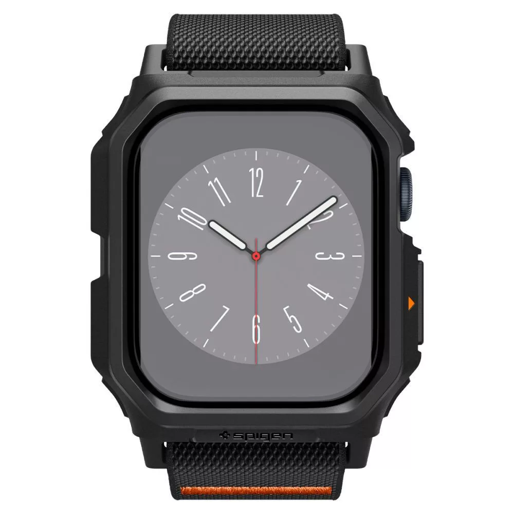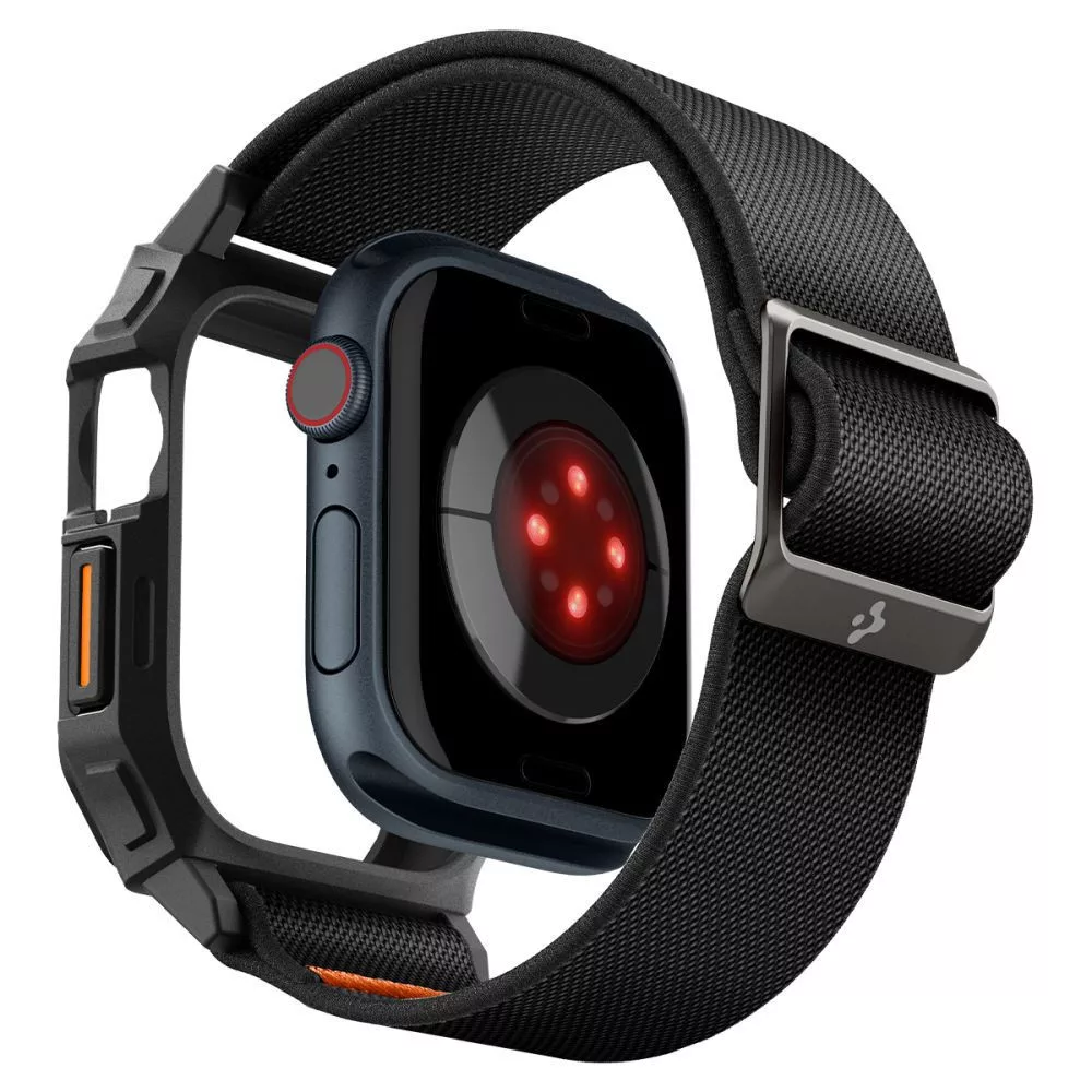 Apple Watch 10-11 (42 mm), textíl pótszíj, szilikon keret, közepesen ütésálló, Spigen Lite Fite Pro, fekete
