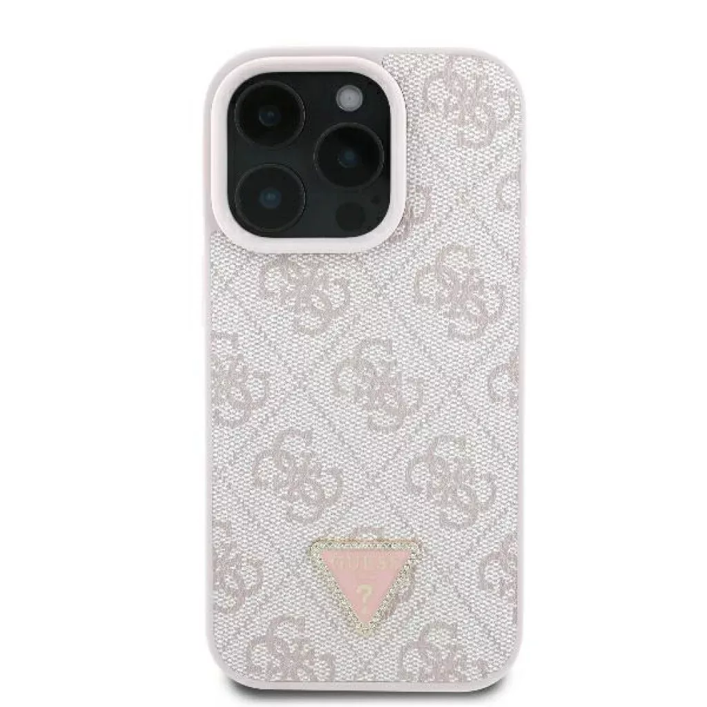 Apple iPhone 16 Pro rózsaszín GUESS eredeti bőr tok 4G Triangle Strass Magsafe GUHCP16LP4TDPP