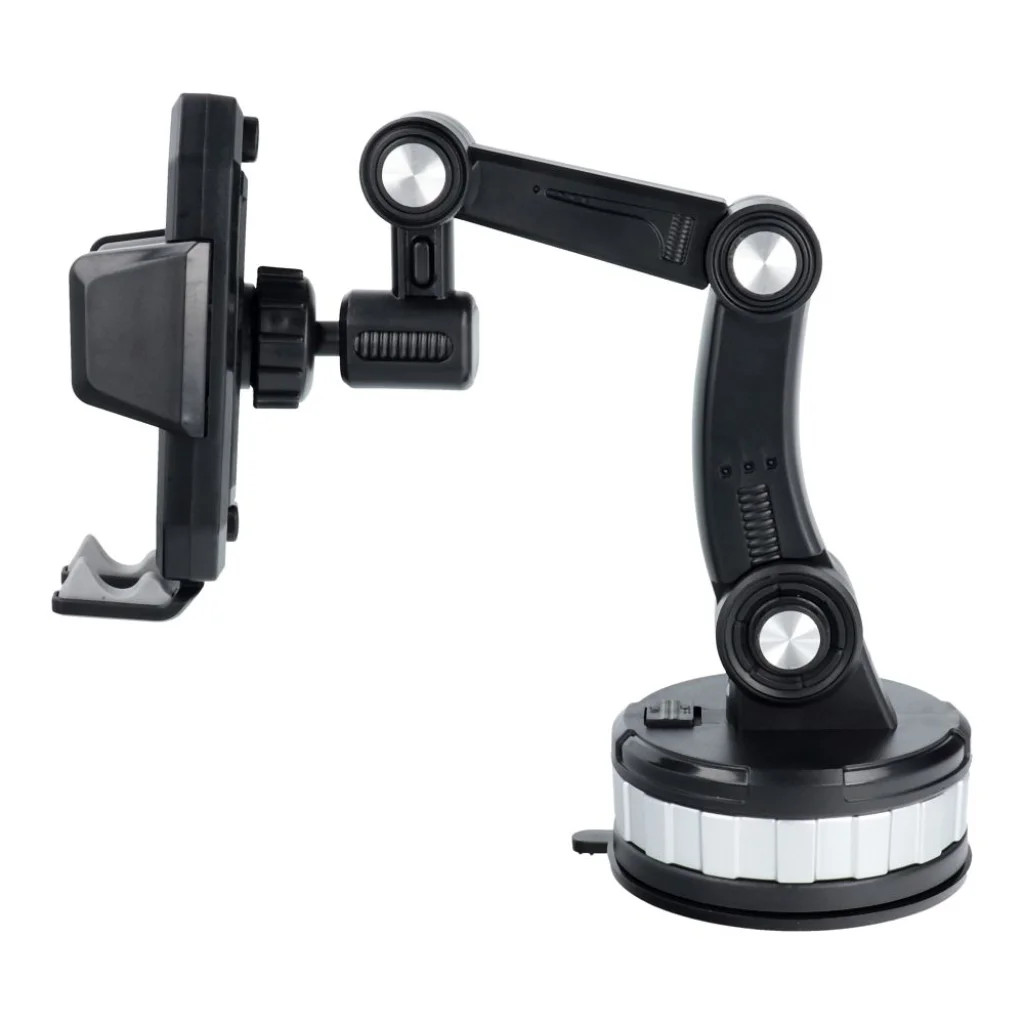 Univerzális autós telefontartó okostelefonhoz. Rögzíthető a szélvédőre vagy a műszerfalra. A tartó lehetővé teszi a kényelmes használatot, például az okostelefon navigációját utazás közben. Kihúzható kampók, hosszú állítható kar 360 fokos forgatással, és a telefon vertikális vagy horizontális elhelyezésének lehetősége biztosítja, hogy az okostelefont egyedi igényekhez igazíthasd. A szélvédőre vagy a műszerfalra történő kényelmes felszerelés nem korlátozza a kilátást vezetés közben. Specifikációk: Modell: ZP-X0566Kompatibilitás: 4.7–6.8 hüvelyk képátlójú készülékekKar távolság: 54.0–94.9 mmTelepítés: szélvédő, műszerfal (tapadókorong)Anyag: PC + ABS + acél + szilikonSúly: 280 g
