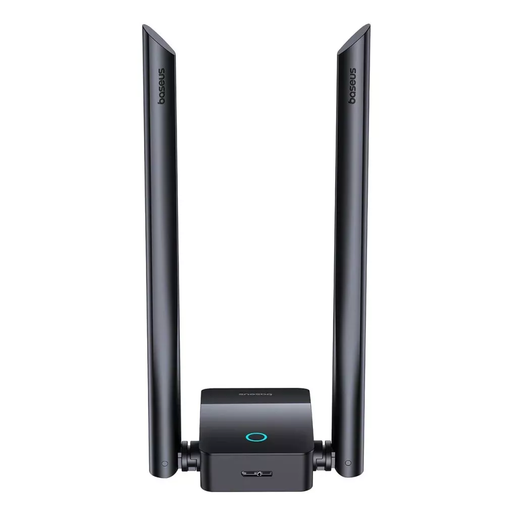 Baseus FastJoy B01317600111-06 1800 Mb/s USB hálózati kártya - fekete A Baseus FastJoy B01317600111-06 USB hálózati kártya a tökéletes megoldás a stabil és gyors WiFi kapcsolat létrehozására. Ez a két sávos USB hálózati kártya akár 1800 Mb/s sebességű (600 Mb/s 2.4 GHz-en + 1200 Mb/s 5.8 GHz-en) kapcsolatokat tesz lehetővé. A WiFi 6 szabvánnyal való kompatibilitás biztosítja a legújabb kapcsolat titkosítási protokollokhoz való hozzáférést, és a két működési tartomány révén a kártya univerzális eszköz, amely bármely hozzáférési ponthoz való csatlakozást lehetővé tesz. Az Access Point (SoftAP) mód lehetővé teszi a kapcsolat megosztását más eszközökkel, például tablettel vagy mobiltelefonnal. Két 18 cm hosszú mozgatható antenna segít a kapcsolat létrehozásában még nehéz körülmények között is. Műszaki adatok: - Márka: Baseus - Modell: FastJoy B01317600111-06 - Csatlakozó: USB-A - Kompatibilitás: Windows 10/11 - Támogatott jel tartományok: - 2.4GHz - 5.8 GHz (5 GHz) - WiFi szabványok: - IEEE 802.11 b/g/n - IEEE 802.11 a/ac - Titkosítási módok: WPA-PSK, WPA2-PSK, WPA/WPA2-PSK, 64/128 WEP, WPA3 - Antenna energianyereség: 2 x 5 dBi - Támogatott technológiák: MU-MIMO, 1024-QAM, OFDMA, TWT, CCA, SoftAP - Antenna típus: külső - Tartozék: USB-A (férfi) - USB-A (női) kábel - 1 m - Anyag: PC, ABS - Szín: fekete A Baseus FastJoy B01317600111-06 hálózati kártya legfontosabb előnyei: - Gyors kapcsolatot biztosít. A Baseus kártyával akár 1800 Mb/s sebességű kapcsolatokat érhet el. - Modern megoldásokat támogat. A kártya támogatja a WiFi 6 szabványt és az abban foglalt összes technológiát. - Univerzális. Képes működni a két legnépszerűbb működési tartományban. - Lehetővé teszi a kapcsolat megosztását. A SoftAP technológiával a kártya Access Pointként is működhet. - Könnyen talál elérhető hálózatokat. Két síkban állítható antennái erősítik a jelet. Kapcsolati sebesség A kártya akár 1800 Mb/s összsebességet is elérhet. A gyors kapcsolat biztosítja, hogy az online játékok dinamikája ne vesszen el, fájljai a lehető leggyorsabban letöltődjenek, és kedvenc sorozatait zökkenőmentesen, bosszantó pufferelések nélkül nézhesse meg. WiFi 6 támogatás A WiFi 6 szabvány támogatása lépés a jövőbe. A legújabb adat titkosítási technológiák, a korábban otthoni vezeték nélküli hálózatban elérhetetlen sebességek, a kapcsolatot gyorsító technológiák – nem kell többet várnia! Univerzális megoldás A kártya lehetővé teszi mind a 2.4 GHz, mind az 5.8 GHz (5 GHz) sávos működést, így kompatibilis a piacon elérhető routerek és hozzáférési pontok többségével. Bárhol is legyen, biztos lehet benne, hogy csatlakozni tud egy forró ponthoz, otthoni routerhez vagy céges hálózathoz. Kapcsolat megosztás A SoftAP technológia támogatása lehetővé teszi, hogy számítógépét hozzáférési ponttá alakítsa. Csak engedélyezze a funkciót a Windows 10/11 rendszerben, hogy a kártya ne csak a WiFi jelet fogadja, hanem továbbítsa is. Ennek köszönhetően pillanatok alatt csatlakoztathatja táblagépét vagy mobiltelefonját az internethez. Két beépített antenna Az eszköz kialakítása lehetővé teszi az antennák szögének széles körben való beállítását. Az antenna legfeljebb 5 dBi energianyeresége miatt a kártya jól teljesít még a hozzáférési ponttól falakkal elválasztott helyiségekben is. Az 1 m-es USB kábelnek köszönhetően a Baseus kártyát olyan helyre helyezheti, amely még jobb jelvételt biztosít.