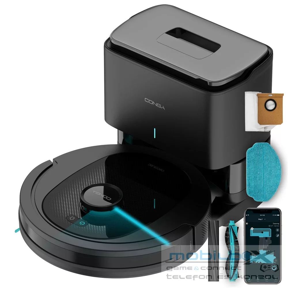 Conga 8490 Ultimate Ultra Robot Porszívó, 4 az 1-ben, 7000 Pa, Lézer, 170 perces üzemidő, 2 központi kefe, Mop funkció, öntisztító alap