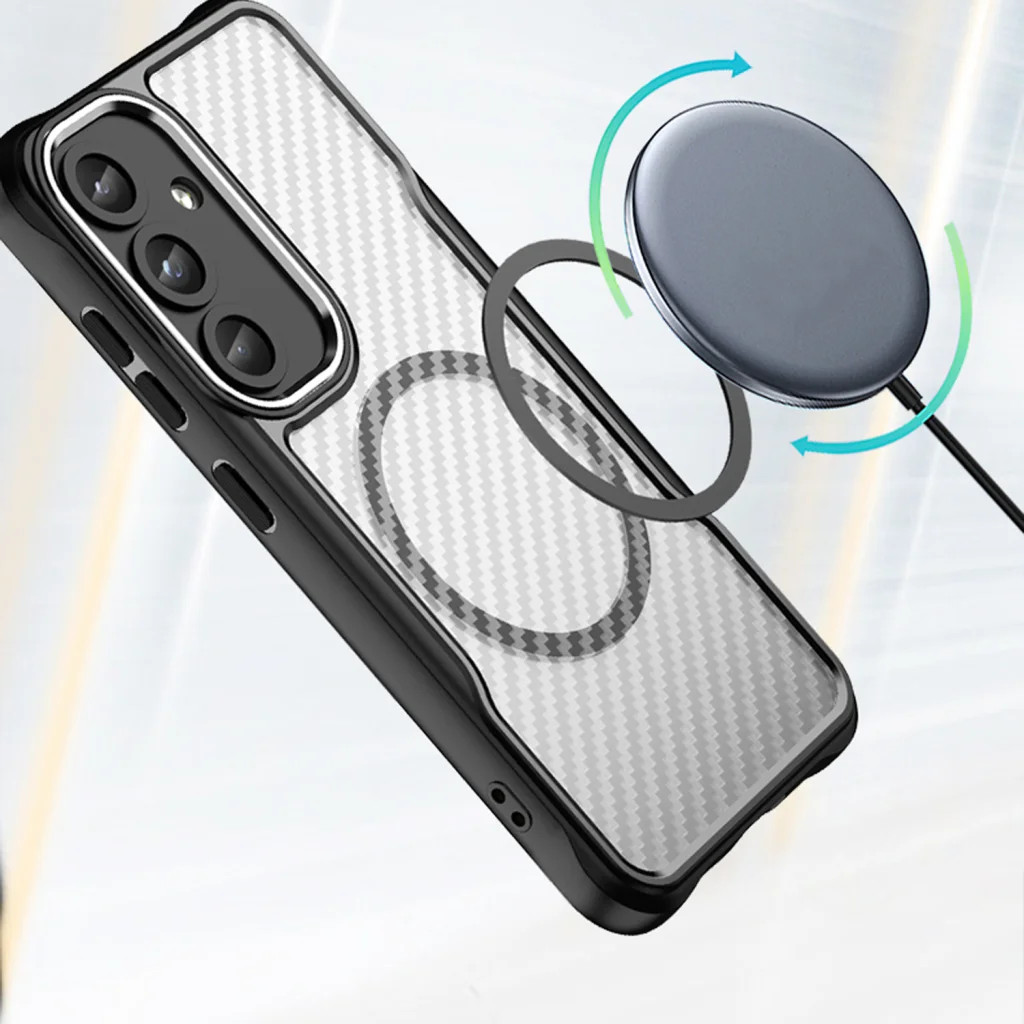 Specifikáció - Kompatibilis a MagSafe-fel: igen - Vastagság: 2 mm - Márka: TFO - Illik a: Telefonok/smartphone-ok/Samsung/Galaxy S24 FE - Szín: fekete - Anyag: PCTPU (hőre lágyuló poliuretán) - Mágneses erő: 2300 GS - Funkciók: telefonvédelem, kamera sziget védelem - Szavatosság: 12 hónap Termékleírás Defender Carbon Mag borítás A Defender Carbon Mag borítás megbízható védelmet nyújt a telefon számára, ötvözve a tartósságot a modern dizájnnal, teljes körű biztonságot kínálva a felhasználók eszközei számára. Rugalmas TPU-ból és tartós PC-ből készült, hatékonyan védi a telefont az ütések, sokkok és karcolások ellen, miközben vékony profilt tart meg mindössze 2 mm vastagsággal. Az integrált mágnes teljesen kompatibilissé teszi a tokot a MagSafe-szel, lehetővé téve a töltők, autós tartók és mágneses kiegészítők kényelmes használatát. Pontos kivágások a kamerához, portokhoz és hangszórókhoz garantálják az eszköz teljes funkcionalitását, megszüntetve a korlátozásokat. Pontos kivágások a kamera védelmére és teljes funkcionalitását biztosítja a lencséknek akadályoztatás nélkül. Szénszálas textúra javítja a fogási ergonomikát, biztosítja a modern dizájnt és csökkenti a foltokat. MagSafe kompatibilitás töltőkkel, autós tartókkal és más mágneses kiegészítőkkel működik. Megemelt szélek hatékonyan elnyelik a sokkokat és ütéseket, további védelmet nyújtva a károsodások ellen a mindennapi használat során.
