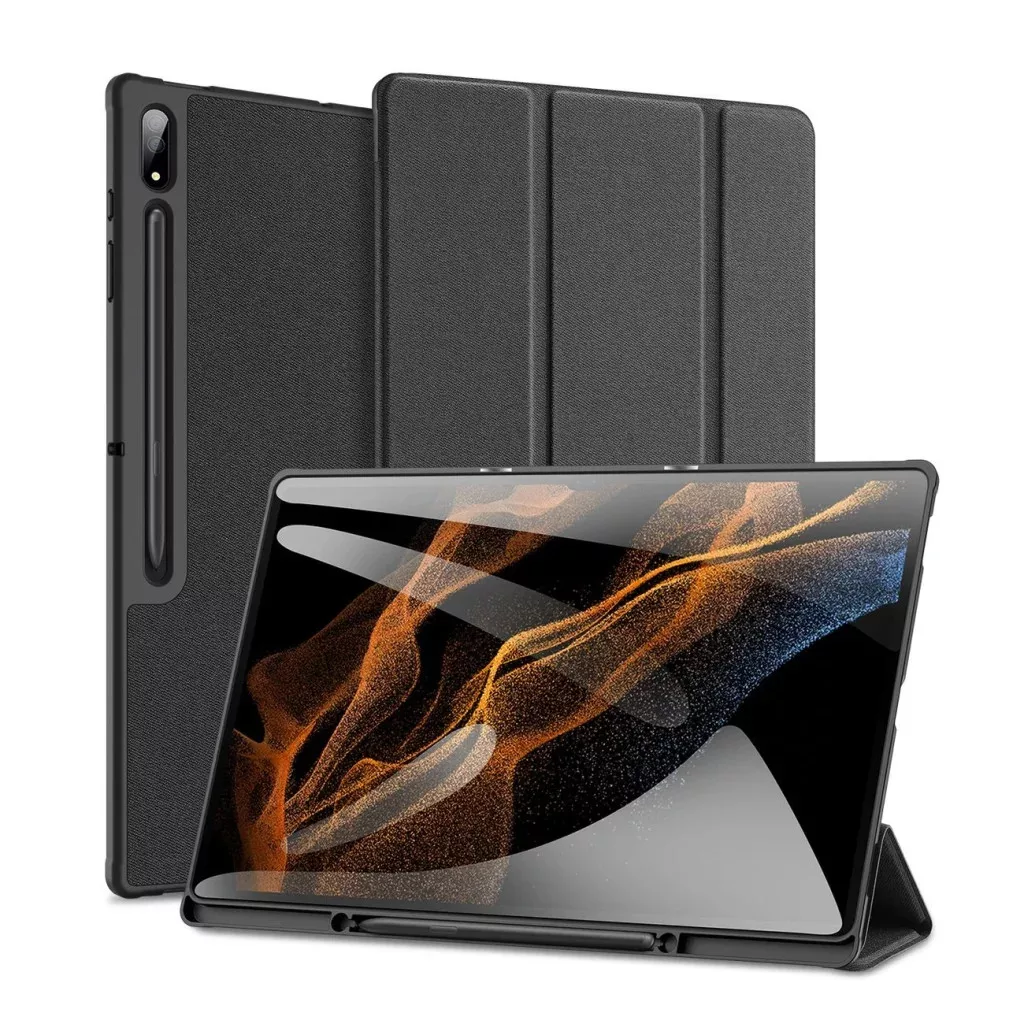 Dux Ducis Domo: - Elegáns tablettok állvány funkcióval. - Stílusos kialakítás - A tok elegáns megjelenéssel rendelkezik, amely bármilyen helyzetben megállja a helyét. Legyen szó üzleti találkozóról vagy hétköznapi társasági beszélgetésről. - Tartós és strapabíró - Az eszköz érintésre kellemes eko bőrből készült, belsejében pedig puha TPU borítással rendelkezik. - Teljes védelem - A tok zárt kialakítása révén a tablet tökéletesen védett minden oldalról. - Állvány funkció - A tok felhajtható kényelmes állványként. Ideális filmnézéshez vagy fényképek böngészéséhez. - Automatikus ébresztés - Az intelligens rendszer "felébreszti" az eszközt, amikor felemeljük a fedelet, és "altatja", amikor lezárjuk. Kényelem + energiatakarékosság. - Megemelt peremek - Enyhén megemelt élek további védelmet nyújtanak a képernyő és a kameralencse számára. - Precíz kivágások - Garantálják a könnyű hozzáférést minden szükséges porthoz és gombhoz. - Praktikus stylus tárolás - A tok beépített stylus tárolóval rendelkezik, így mindig kéznél tarthatjuk. Specifikáció: - Márka: Dux Ducis - Név: Domo - Anyag: eko bőr + TPU - További jellemzők: állvány funkció, automatikus ébresztés, stylus tárolás