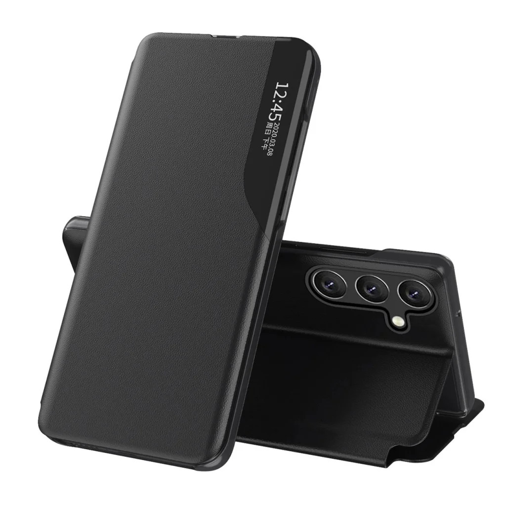Fliptok Samsung Galaxy S24 FE készülékhez, Eco Leather View Case sorozat, fekete színben Az Eco Leather View Case fliptok kiváló védelmet nyújt a Samsung Galaxy S24 FE készüléked számára. Elegáns műbőr és erős PC anyagból készült tok, amely megóvja az eszközt a szennyeződésektől, karcolásoktól és esésből eredő sérülésektől. A telefon csatlakozóinak kivágásai lehetővé teszik a töltő és a headset szabad csatlakoztatását, valamint a hangerő, a ki/be kapcsoló (zár) gombjainak, a hangszórónak, a kamerának és a vaku használatát. A tok hátulja állvány funkcióval is rendelkezik, így kényelmesen nézhetsz filmeket telefonon vagy folytathatsz videohívásokat anélkül, hogy a kezedben tartanád az eszközt. Az Eco Leather View Case sorozat elegáns tokja nem csupán védelmet nyújt, hanem stílusos kiegészítője is a készülékednek. Specifikáció: - Márka: Hurtel - Sorozat: Eco Leather View Case - Anyag: PC, PU - További funkciók: állvány funkció - Kompatibilitás: Samsung Galaxy S24 FE - Szín: fekete Az Eco Leather View Case fliptok legfontosabb előnyei a Samsung Galaxy S24 FE készülékhez: - Stílusos design. A tok részleteiben gondosan kidolgozott, így elegáns és divatos kiegészítője a Samsung Galaxy S24 FE készüléknek. Akár üzleti találkozón, akár baráti beszélgetés során használod, a tok mindig jól mutat. - Tartós és strapabíró. Kiváló minőségű műbőrből készült, amely kellemes tapintású és ellenáll a szennyeződéseknek. A tok ellenáll a mindennapos használatnak és hosszú szolgálatot tesz. - Teljes körű védelem. A zárt kialakítású tok révén a telefon minden oldalról tökéletesen védett. Legyen a tok nyitva vagy zárva, a telefonod biztonságban lesz. - Állvány funkció. A tokot összehajtva kényelmes állványként használhatod, amely lehetővé teszi a filmek nézését vagy képek böngészését anélkül, hogy kézben kellene tartani a telefont. - Könnyű használat a "fliptok" nyitószerkezettel. A tok oldalra nyílik, ami megkönnyíti a telefon kivételét és behelyezését. Nem kell többé aggódnod amiatt, hogy a telefon kicsúszik a kezedből a tok nyitásakor.