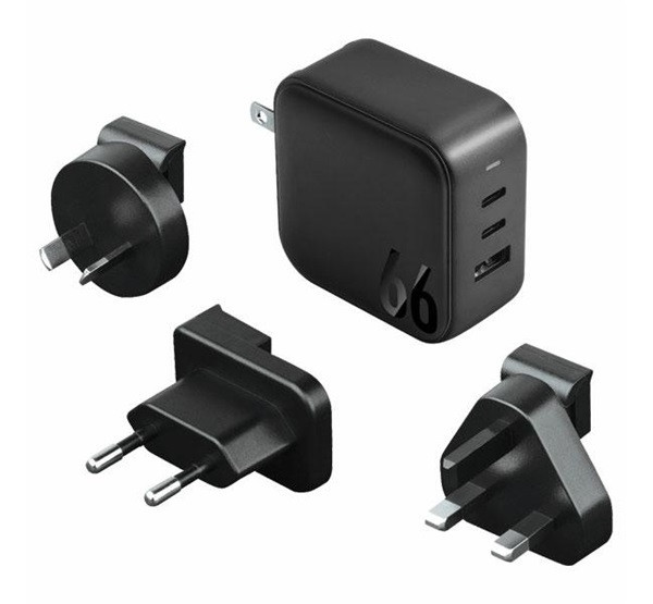 Energea Travelite GAN66 1xUSB-A/ 2xUSB-C utazó gyorstöltő adapter, (PD-PPS-QC 3.0) 66W, fekete (US/EU)
