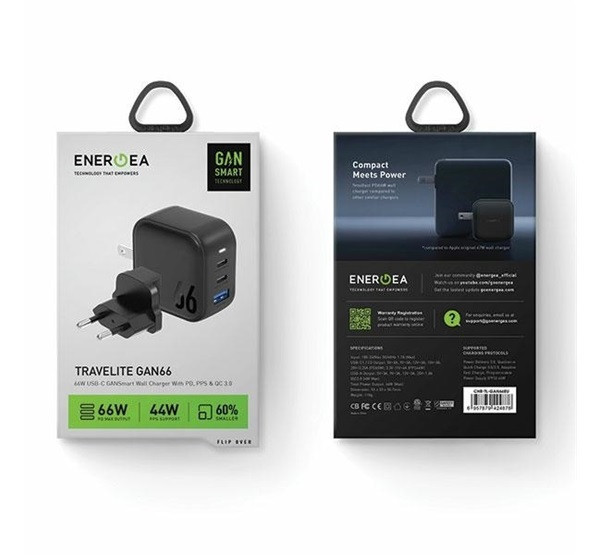 A kompakt Energea Travelite GaN66 fali töltő egy sokoldalú és nagy teljesítményű töltési megoldás, amely gyors és hatékony töltést biztosít elektronikus eszközei számára. Ideális megoldás azok számára, akiknek fontos a gyors töltés és az elektronikus készülékek biztonsága. A készülék 1 USB-A és 2 USB-C porttal rendelkezik, így akár három eszköz egyidejű töltését is lehetővé teszi. Legyen szó okostelefonról, táblagépről, power bankról vagy más eszközről, az Energea Travelite GaN66 megfelel az Ön elvárásainak. Ez a töltő 66 W maximális kimeneti teljesítményével gyors és hatékony töltést biztosít eszközeinek.