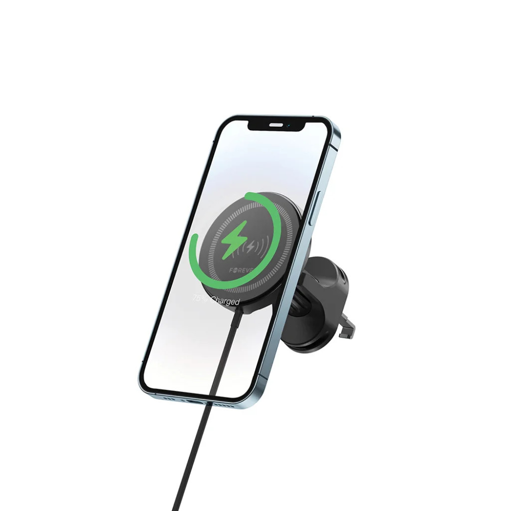 Specifikáció: - Maximális teljesítmény [W]: 15 W - Kompatibilis a MagSafe-fel: igen - Márka: Forever - Szín: fekete - A telepítés helye: a rácsra - Szavatosság: 12 hónap Termékleírás: Az autós tartó a MACH-300 mágneses rácsra, vezeték nélküli töltéssel, kényelmes és praktikus megoldás azoknak a vezetőknek, akik értékelik a funkcionalitást és a kényelmet. Az eszköz kompatibilis a MagSafe rendszerrel és minden olyan okostelefonnal, amely támogatja a vezeték nélküli töltést, gyors és hatékony töltést kínálva 15W teljesítménnyel. A Qi2 technológia és az erős mágnesek révén a tartó biztonságosan tartja a telefont, még egyenetlen felületeken is. Az egyszerű rögzítési rendszer kényelmessé teszi a használatát bármilyen járműben. A Qi2 technológia optimalizálja az energiafogyasztást és védi az eszköz akkumulátorának élettartamát. A mágneses, adaptív töltés nagyobb sebességet és biztonsági funkciókat biztosít.