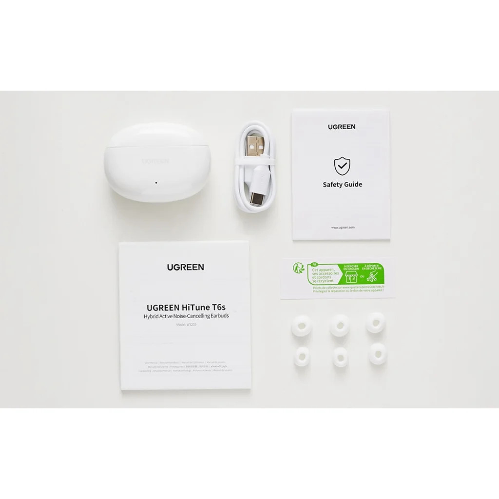 Az UGREEN WS205 HiTune Hybrid ANC fülhallgatóval még nagyobb élvezetet szerezhetsz a zenehallgatásból. A hibrid aktív zajszűrés (ANC) hatékonyan kizárja a város vagy az iroda zaját, így Ön a hangra vagy a beszélgetésre koncentrálhat. A hosszú akkumulátor-üzemidő és a kényelmes használat további előnyök. Zene, amelybe beleszeret Az AAC, SBC és LDAC kodekek támogatása felelős a kivételes hangminőségért, így minden dal természetes hangzású, a részletek pedig tisztábbak. A széles frekvenciaválasz (20 Hz és 40 kHz között) mély basszusokat és tiszta magasságokat tesz lehetővé. Hatékony zajszűrés (ANC) A hibrid ANC rendszer hatékonyan elnyomja a környezeti hangokat, így Ön a zenére, a munkára vagy a beszélgetésekre koncentrálhat. Az alkalmazott technológia révén a forgalmas utcáról, irodából vagy tömegközlekedési eszközökről érkező zajok többé nem jelentenek problémát. Kivételes hívásminőség A különböző irányokból érkező hangot rögzítő 6 mikrofonnak köszönhetően minden beszélgetés tisztán szól még zajos környezetben is. A mesterséges intelligencia által támogatott algoritmusok kiszűrik a zajt, az Ön hangjára összpontosítva. Stabil Bluetooth 5.4 kapcsolat A Bluetooth 5.4 garantálja a gyors párosítást és a megbízhatóságot akár 10 méteres távolságon keresztül. Számíthatsz a zökkenőmentes, késleltetésmentes átvitelre, akár telefont, táblagépet vagy laptopot használsz. A megérdemelt kényelem A könnyű kialakításnak és a cserélhető hegyeknek köszönhetően a fülhallgató szilárdan ül a fülében anélkül, hogy kényelmetlenséget okozna. Az UGREEN WS205 HiTune Hybrid fülhallgatóval órákon át hallgathatsz zenét, miközben élvezheted a kényelmet. Hosszú üzemidő A fülhallgató egy teljes feltöltésével körülbelül 6 órányi zenelejátszás érhető el, a tokkal együtt pedig akár 30 órányi használatot is nyerhet. Emellett a gyorstöltésnek köszönhetően mindössze 1,5 óra alatt újra élvezheti kedvenc zenéit. Tartalmazza a következőket: - TWS UGREEN WS205 HiTune hibrid fülhallgató - Töltőtok - USB-C kábel - 3 pár cserélhető gumiszalag - Felhasználói kézikönyv