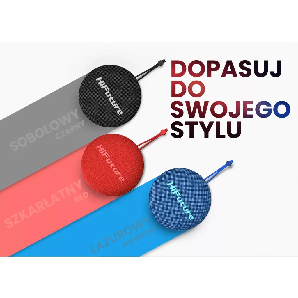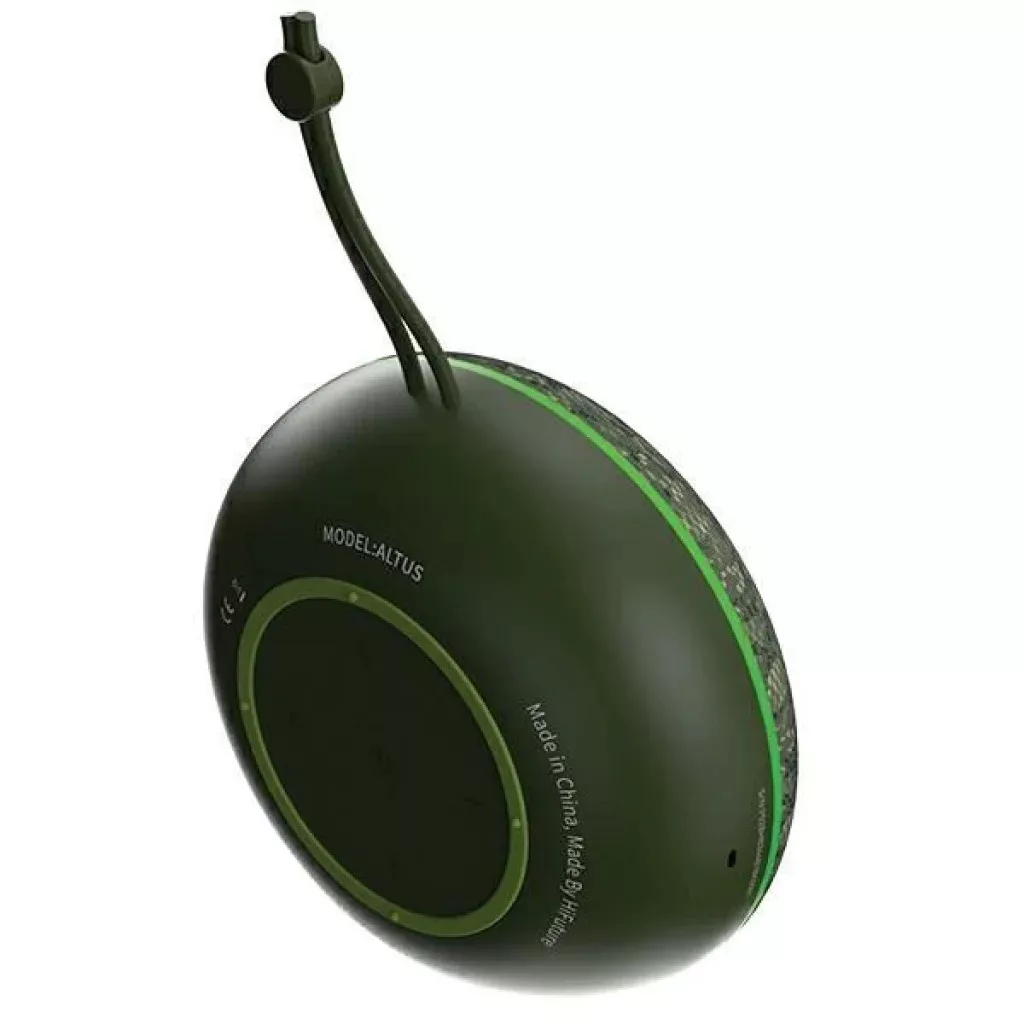 HiFuture ALTUS Take your listening experience to the next level with ALTUS HiFuture; colorful lighting settings truly enhance the immersive atmosphere. ALTUS features a durable housing and a multi-directional strap, making it suitable for almost any situation. You can wear it on your wrist, in a backpack, or even hang it from an umbrella when you're out and about. A perfectly portable compact design with a durable housing, the ALTUS fits perfectly in your fingers thanks to the included strap, allowing you to carry it anywhere. We provide comfort and durability in one compact design, whether you're exploring the great outdoors or just relaxing at home. The amazing 10W output power of the mini portable speaker delivers crystal clear sound and powerful, soft bass without any compromise. Waterproof and dustproof with an IPX5 rating, the ALTUS by HiFuture is your musical companion at the pool, river or park - perfect for any adventure. ALTUS by HiFuture ensures fast and stable pairing with your 5.3 wireless network. Make hands-free calls when you're away from your device. Take your sound with you wherever you go. Our impressive battery life guarantees up to 8 hours of playback, so you can enjoy your favorite tracks without interruption, whether you're doing yoga or relaxing on the beach. The ALTUS model by HiFuture allows you to stand out from the crowd thanks to its distinctive design, mesh texture, vibrant materials and expressive details. Take advantage of Type-C fast charging for lightning-fast charging. Power up your ALTUS speaker in a flash, ensuring uninterrupted music and entertainment wherever you go. Crank up the party vibes by connecting two ALTUS wireless speakers simultaneously using our advanced TWS mode. Let the fun begin! Technical Data Type Portable Bluetooth speaker Bluetooth version V5.3 Color Green Bluetooth chipset AC66966B Bluetooth profile HFP1.7 / A2DP1.3 AVRCP 1.6 Game mode Mono or TWS mode Water resistance IPX7 Wireless range 10 meters (in free space) Frequency response 95Hz-20KHz (±6dB) Speaker diameter 43 mm Speaker impedance 4 ohms (±15%) Rated power 5W SPL 81 dB / 1m Charging voltage and current DC5V@1A SNR >=76 dB THD+N <=1% (5W / 1kHz)> Battery type Lithium-ion polymer battery Battery life 80% capacity after 300 cycles Music playback time 6 hours Standby time 300 days Charging time 2 hours Charging port USB-C Libra 157 g Dimensions 93*47.5±1 mm