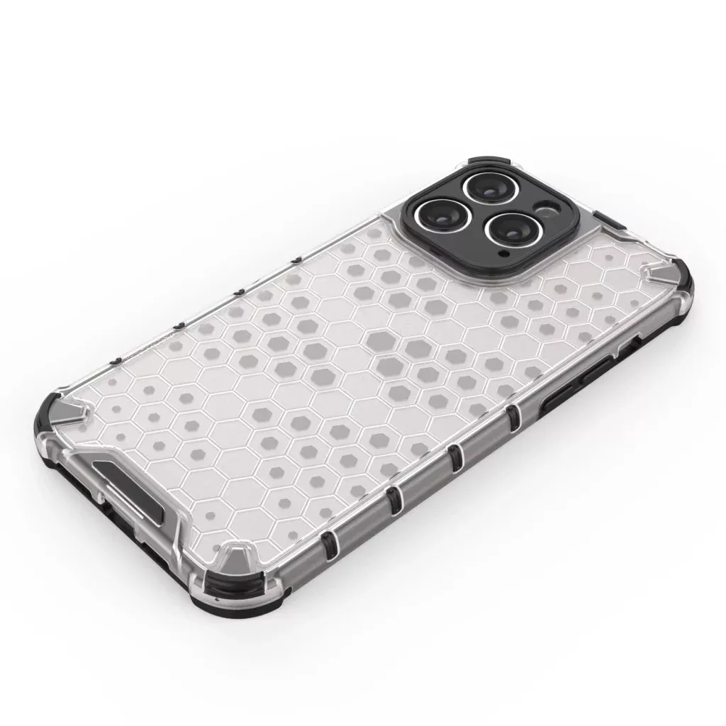 Páncélozott iPhone 14 Pro Max tok a Honeycomb sorozatból fekete színben Honeycomb sorozat tok , amely termoplasztikus és tartós anyagból készült, méhsejt alakban elrendezve. A tok _iPhone 14 Pro Max_-hoz van igazítva, tökéletesen védi a telefont a sérülésektől, amelyek esés vagy karcolások által (például zsebbe helyezett kulcsok által) keletkezhetnek. Az emelt élek a képernyő és a hátsó kamera körül megvédik a telefont ezeket az elemeket érő karcolásoktól, amikor sík felületre helyezik. Érzékeny gombokkal és port kivágásokkal rendelkezik. Tökéletes azok számára, akik értékelik a stílust, a minőséget és gondoskodni akarnak az eszközükről. Műszaki adatok: - Sorozat: Carbon Case - Anyag: TPU, PU - Kompatibilitás: iPhone 14 Pro Max - Készülék modell kódok: - A2651 - A2893 - A2896 - A2895 - A2894 - Fekete szín A Honeycomb tok kiemelt jellemzői iPhone 14 Pro Max-hoz: - Hibrid tok merev hátlappal és rugalmas kerettel. - Eredeti design - A tok hátulján méhsejthez hasonlító minta található. - Tartós és ellenálló - Erős PC anyagból készült, a tok védi az eszköz hátulját, míg a rugalmas TPU keret az éleit védi. - Emelt élek - Enyhén megemelt élek további védelmet nyújtanak a képernyőnek és a kamera lencséjének. - Integrált gombok - Megakadályozzák a szennyeződések bejutását a gombok alá. - Precíz kivágások - Garantálják az egyszerű hozzáférést minden szükséges porthoz.