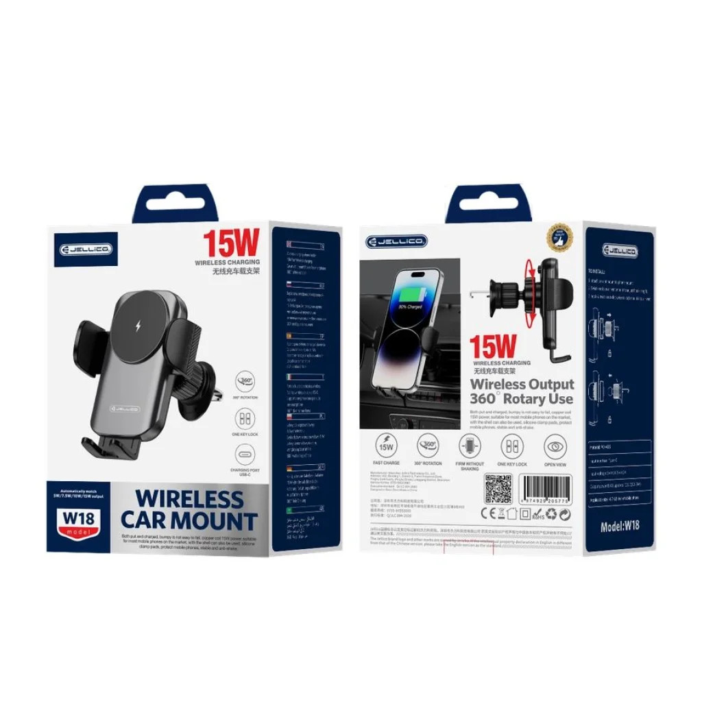 Jellico W18 autós telefontartó vezeték nélküli töltéssel 15w – Fekete A JELLICO W18 egy modern és intelligens autós telefontartó, amely a kényelem, a biztonság és a villámgyors töltés tökéletes kombinációját nyújtja. Felejtsd el a kézi beállítást és a kusza kábeleket! Ez a Qi-kompatibilis, 15W-os gyorstöltővel ellátott tartó garantálja, hogy telefonod mindig biztonságban legyen és feltöltve maradjon utazás közben. Kiemelkedő tulajdonságok Intelligens, automatikus befogás és egygombos kioldás: A JELLICO W18 beépített, „szuper erős motorral” ellátott automatikus befogórendszerrel rendelkezik. Csak helyezd bele a telefonodat a tartóba, és a karok azonnal, biztonságosan rögzítik azt. Az „ONE KEY LOCK” (egy gombos zár) és „Press Here” funkciónak köszönhetően egyetlen érintéssel könnyedén kioldhatod és eltávolíthatod készülékedet. A tartó karjain található puha párnázás („protect mobile phones”) gondoskodik arról, hogy telefonod sérülésmentesen, stabilan álljon a helyén. Villámgyors 15W vezeték nélküli töltés: Élvezd a Qi-kompatibilis vezeték nélküli gyorstöltés előnyeit, amely akár 15W teljesítménnyel képes feltölteni telefonodat. Támogatja a 10W, 7,5W és 5W töltési szinteket is, így széles körben kompatibilis a legtöbb vezeték nélküli töltésre képes okostelefonnal. A megbízható és gyors energiaellátásról a tartó alján található USB-C csatlakozó gondoskodik, a kiváló minőségű réz tekercsek pedig az optimális töltési hatékonyságot biztosítják. 360°-ban forgatható és rendkívül stabil rögzítés: A „360 ROTATION” funkcióval ellátott forgatható fejnek köszönhetően pillanatok alatt beállíthatod a legmegfelelőbb látószöget, legyen szó navigációról álló vagy fekvő módban. A robusztus szellőzőrácsra rögzíthető klip biztonságosan tartja a telefont még rázós, göröngyös úton is, és az „anti-vibration” kialakítás minimalizálja a vibrációt. Az „OPEN VIEW” design nem akadályozza a telefon kijelzőjének láthatóságát. Széleskörű kompatibilitás és prémium design: A tartó 4,7″ és 6,9″ közötti képernyőméretű telefonokkal kompatibilis, így a legtöbb modern okostelefonhoz tökéletes választás. A tartós PC+ABS műanyagból készült ház garantálja a hosszú élettartamot és az elegáns megjelenést. A hátoldalon található diszkrét szellőzőnyílások (lamellák) segítik a hőelvezetést, biztosítva a töltő és a telefon optimális működését még hosszabb, intenzív használat során is. A JELLICO W18 autós telefontartó vezeték nélküli töltéssel nem csupán egy kiegészítő, hanem egy okos befektetés, amely leegyszerűsíti az autóban töltött időt. Biztonság, sebesség és kényelem – mindez egyetlen elegáns eszközben.