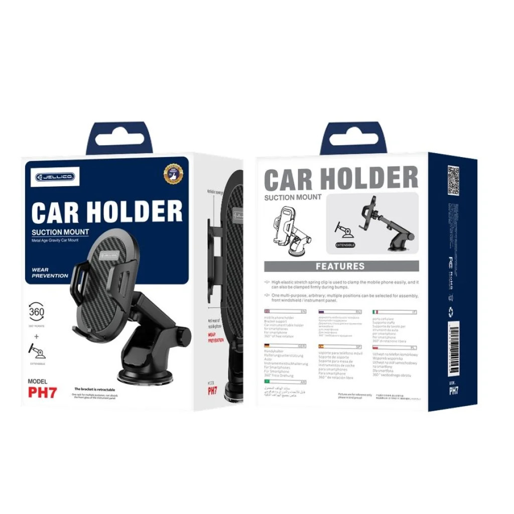 Jellico autós telefontartó gravitációs PH7 fekete A Jellico PH7 gravitációs autós telefontartóval telefonja biztonságosan rögzíthető és mindig kézre eső helyen marad, így zavartalanul élvezheti az utazást. Ez a modern és funkcionális tartó ideális választás mindennapi használatra, elegáns fekete színével és praktikus kialakításával. Főbb jellemzők: Stabil tapadókorongos rögzítés: Az erős tapadókorongos kialakításnak köszönhetően a tartó rendkívül stabilan rögzíthető az autó szélvédőjére vagy műszerfalára. A multifunkcionális kialakítás többféle elhelyezési lehetőséget kínál az Ön kényelmére. Egyszerű gravitációs mechanizmus: A "Metal Age Gravity" technológia révén a telefon súlya automatikusan összezárja a tartó karjait, biztosítva a stabil fogást. A rugalmas és nagy ellenállású rugós csipeszekkel ellátott karok könnyedén rögzítik a telefont, így egy kézzel is behelyezhető és kivehető. 360 fokos szabad forgás: A teljes 360 fokos elforgatási lehetőségnek köszönhetően könnyedén beállíthatja az optimális látószöget, legyen szó navigációról, hívásokról vagy médiafogyasztásról. Kihúzható tartókar: A "The bracket is retractable" funkció további rugalmasságot biztosít a telefontartó pozícionálásában, lehetővé téve a készülék ideális elhelyezését az autó belső terében. Kopásvédelem: A tartó "WEAR PREVENTION" kialakítása révén belső felületei puha, csúszásgátló anyaggal vannak bevonva, így óvja telefonját a karcolásoktól és a kopástól, miközben szilárdan a helyén tartja. Prémium megjelenés: A fekete szín és a modern, szénszálas textúra elegáns és sportos megjelenést kölcsönöz a tartónak, tökéletesen illeszkedve az autója belső terébe. Termék specifikációk: Márka: Jellico Modell: PH7 Szín: Fekete Rögzítés típusa: Tapadókorongos (szélvédőre / műszerfalra) Telefontartás: Gravitációs, rugalmas karokkal Forgathatóság: 360 fok Kialakítás: Kihúzható tartókar Csomagolás típusa: Bliszter
