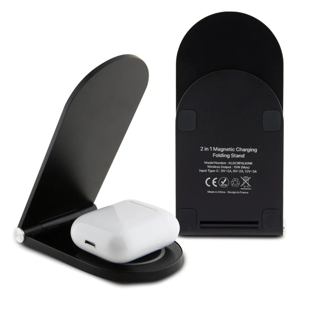 Bemutatjuk Önnek a kivételes Karl Lagerfeld Alumínium Asztali Vezeték Nélküli Mágneses Töltő 2 az 1-ben - egy nagyszerű segítőtársat telefonja gyors és kényelmes töltéséhez. Akár 15 W teljesítményével igazán erőteljes eszköz, amely megkönnyíti mindennapi életét. Ez a töltő két mágneses töltési területtel rendelkezik, így egyszerre két eszközt is tölthet. Még jobb, hogy stílusos asztali állványként is funkcionál, így ideális pozíciót biztosít telefonja tartalmának megtekintéséhez töltés közben. A töltő teljes potenciáljának kihasználásához legalább 18 W adapter szükséges. Ezzel a töltővel biztos lehet benne, hogy telefonja mindig teljesen feltöltött és használatra kész lesz. A Karl Lagerfeld Alumínium Asztali Vezeték Nélküli Mágneses Töltő 2 az 1-ben segítségével élvezheti a kényelmes töltést kábelrengeteg nélkül. Az elegáns dizájn és a magas teljesítmény tökéletes kiegészítést nyújt az asztalához. Szerezze be ezt a praktikus és stílusos töltőt még ma, és élvezze a gyors és vezeték nélküli töltést a Karl Lagerfelddel! Tulajdonságok: - Két mágneses terület két eszköz egyidejű töltéséhez. - Asztali állvány funkció a telefon tartalmának kényelmes megtekintéséhez töltés közben. - Támogatja a 15W/10W/7.5W/5W töltési teljesítményt, ideális a gyors és hatékony töltéshez. - Vezeték nélküli töltés az egyszerű és problémamentes használat érdekében. - Elegáns és stílusos dizájn Karl Lagerfeldtől. - Legalább 18W adapter szükséges a teljes teljesítmény használatához. - USB-C töltési port.