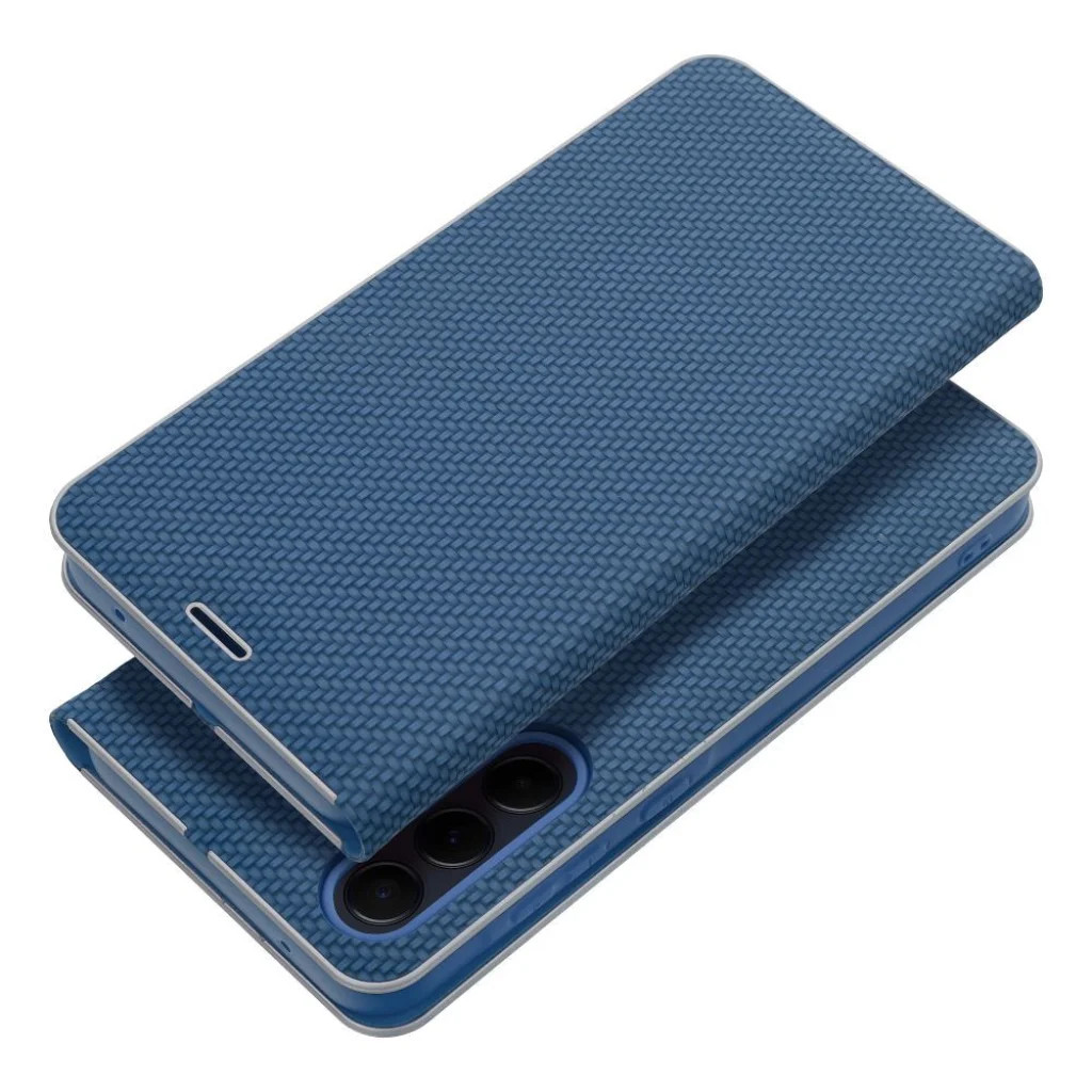 Elegáns tok fémes kerettel a telefon fokozott védelme érdekében. A vonzó textúra és a kellemes tapintású anyag stílusos tokot hoz létre, amely hangsúlyozza a készülék modern kialakítását. A lágy velúr anyag a belső részén és a tartó részén megvédi a készüléket mindkét oldalon a sérülésektől és karcolásoktól. Az elasztikus szilikonból készült fogantyú kivágásokkal rendelkezik. Az alumínium keret a széleken erősebbé teszi a tokot és még jobban védi a készüléket. A fém és az eredeti anyag kombinálása egyedi és modern összetételt hoz létre, amelynek köszönhetően a készülék stílusos és elegáns megjelenést kap. A tokban egy kis zseb található praktikus dokumentumok vagy bankjegyek számára. A tok horizontális alappal rendelkezik filmek vagy fényképek nézéséhez. Egy erős mágnes biztosítja a könnyű zárást és nyitást, valamint megakadályozza a véletlen kinyitást.