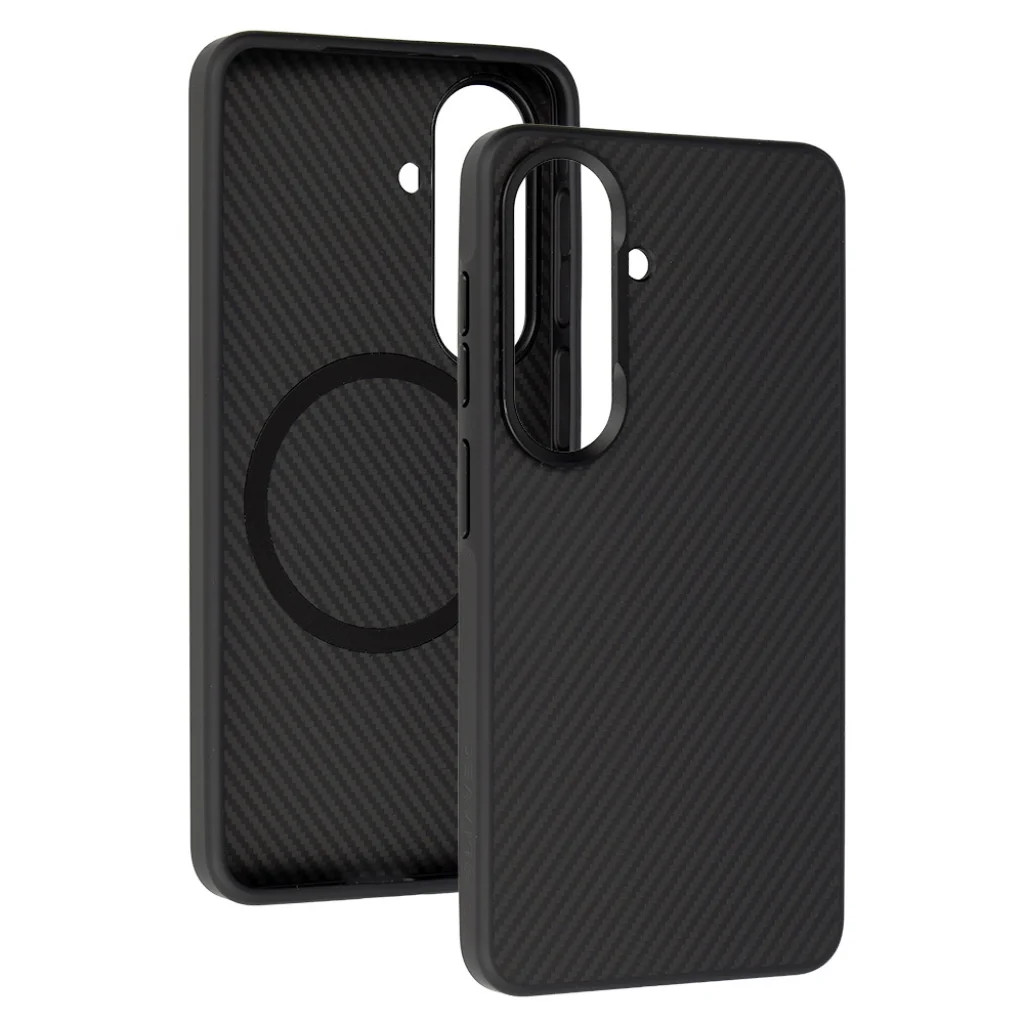 Liavec carbon core tok – elegáns védelem és mágneses kényelem Fedezze fel a Liavec Carbon Core tokot Samsung Galaxy S26 készülékéhez, ahol a kifinomult elegancia és a kompromisszumok nélküli védelem találkozik a MagSafe technológia nyújtotta kényelemmel. Ez a tok a stílus és a funkcionalitás tökéletes egyensúlyát kínálja, biztosítva telefonjának mindennapos biztonságát és egyediségét. Páratlan elegancia és karbon precizitás Kifinomult karbon megjelenés: A tok prémium szénszálas textúrája nemcsak elegáns, de fokozza a fogást és segít elrejteni a mindennapi használat során keletkező mikrokarcokat. A karcsú forma ellenére megbízható teljesítményt nyújt a mindennapokban. Hibrid konstrukció: A merev polikarbonát (PC) hátlap és a rugalmas hőre lágyuló poliuretán (TPU) oldalak robusztus, ütéselnyelő keretet biztosítanak, amely maximális védelmet nyújt a telefonnak. Részletek, amelyek számítanak Fém gombok: Az éles, kielégítő kattanású fém gombok tartós használatot és prémium érzetet biztosítanak minden érintésnél. Precíz illeszkedés: A telefonra szabott, pontos kivágások és az ergonomikus forma garantálja, hogy a tok tökéletesen illeszkedik, és minden port, illetve funkció könnyedén elérhető marad, megőrizve a telefon sziluettjét. Egyszerű telepítés: A "Snap & Go" kialakításnak köszönhetően a tok felhelyezése és eltávolítása gyors és problémamentes. MagSafe technológia a maximális kényelemért Integrált mágneses gyűrű: A beépített erős mágneses gyűrű biztos és stabil tartást garantál minden MagSafe-kompatibilis töltővel és kiegészítővel. Könnyed töltés: Élvezze a vezeték nélküli töltés kényelmét anélkül, hogy levenné a tokot. A MagSafe technológia minden alkalommal stabil és hatékony töltést biztosít. Kompromisszumok nélküli védelem Megemelt élek: A kijelző fölött körülbelül 1,2 mm-rel, a kamera sziget körül pedig megközelítőleg 1 mm-rel megemelt élek extra védelmet nyújtanak a karcok és kisebb ütések ellen a kulcsfontosságú pontokon. Megerősített sarkok: Az ütéscsillapító zónákkal ellátott megerősített sarkok (Shock Shield / Drop Protection) hatékonyan nyelik el az esetleges leesésekből származó energiát, minimalizálva a sérülések kockázatát. Csúszásmentes oldalak: A tok oldalai gondoskodnak a stabilabb és biztonságosabb fogásról, csökkentve a véletlen leejtés esélyét. Vékony profil, szilárd tartással Kiegyensúlyozott vastagság: A "Slim Look" designnak köszönhetően a tok elég karcsú ahhoz, hogy ne vastagítsa meg feleslegesen telefonját, mégis elég robusztus a mindennapi nyugalomhoz. Mindennapi praktikum: Az integrált gombfedők és a tiszta kivágások könnyed és akadálymentes napi használatot biztosítanak, anélkül, hogy a védelem rovására menne.
