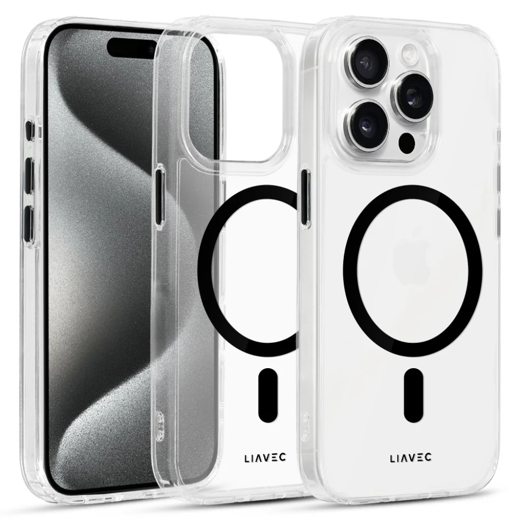 Liavec Glossy Magsafe átlátszó tok iPhone 14 Pro fekete tok