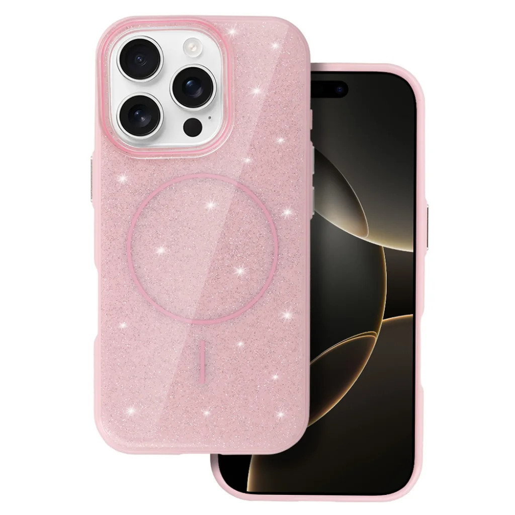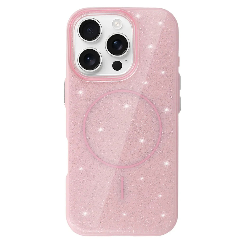 Magsafe Slim Shiny – a shimmering case made of flexible TPU material (sides) and hard acrylic (back). The case protects the back, sides, camera, and screen of the smartphone. Built-in magnets make the case compatible with Apple MagSafe accessories. Hybrid construction (flexible TPU sides + hard acrylic back) Protection against scratches and drops Equipped with a magnetic ring compatible with MagSafe accessories Glittering particles give the case a unique look Raised edges provide additional protection for the screen and camera Lanyard holder Necessary cutouts ensure easy access to all ports Integrated buttons prevent dust and dirt from entering the case Non-slip material ensures a secure grip on the phone