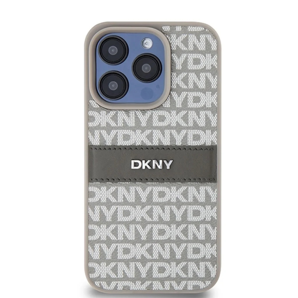 Original Case DKNY keménytok bőrből Mono Stripe és fém logóval DKHCP15XPRTHSLE iPhone 15 Pro Max bézs tok