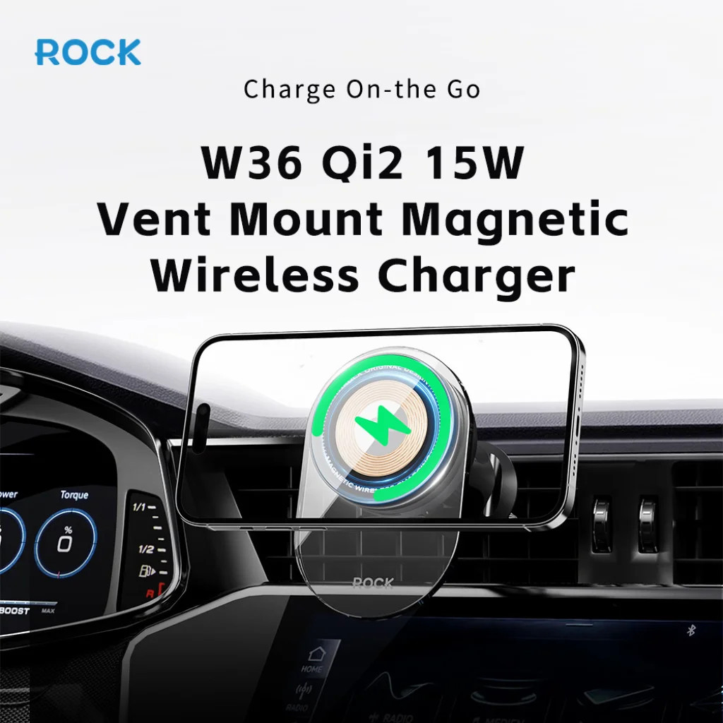 Rock mágneses autós tartó W36 Qi2 indukciós légkimeneti fekete,