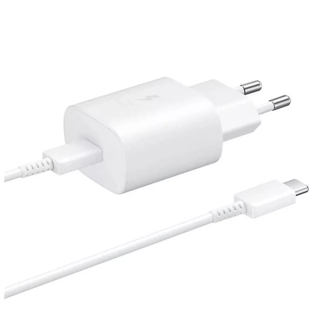 Samsung 25W szupergyors hálózati töltő adapter USB-C kábellel Élvezze a villámgyors és biztonságos töltést a Samsung 25W-os hálózati töltő adapterrel (EP-TA800EWE), amely egy prémium minőségű, 1 méteres USB-C/USB-C kábellel (EP-DA705BWE) érkezik. Ez a letisztult fehér színű töltő-szett tökéletes megoldás készülékei gyors és hatékony energiapótlására, legyen szó otthoni használatról vagy utazásról. A töltő adapteren is jól látható "Super Fast Charging" ikon garantálja a Samsung által biztosított kiemelkedő sebességet és megbízhatóságot. Főbb jellemzők és előnyök: Szupergyors töltés 25W-on: Tapasztalja meg a kiemelkedő töltési sebességet. A 25W maximális teljesítménynek köszönhetően (5V/3A vagy 9V/2.77A) kompatibilis Samsung okostelefonjait és más USB-C eszközöket rekordidő alatt feltöltheti. Többé nem kell órákat várnia, amíg készüléke használatra kész lesz. Intelligens Power Delivery (PD) technológia: A beépített Power Delivery funkció optimalizálja a töltési folyamatot. A töltő intelligensen érzékeli a csatlakoztatott eszköz igényeit, és automatikusan a legmegfelelőbb töltőáramot és feszültséget biztosítja, ezzel garantálva a maximális hatékonyságot és a készülék akkumulátorának védelmét. Széleskörű kompatibilitás: Bár kifejezetten a Samsung készülékekhez tervezték, ez a sokoldalú töltő adapter minden olyan okostelefonnal, tablettel vagy egyéb USB-C porttal rendelkező kiegészítővel kompatibilis, amely támogatja az USB Power Delivery töltési szabványt. Nem kell többé különböző töltőket magával vinnie. Komplett megoldás: A csomag tartalmazza a nagy teljesítményű, európai szabványú (EU) hálózati adaptert és egy ellenálló, 1 méter hosszú USB-C/USB-C kábelt (mindkét végén USB-C csatlakozóval), így Ön azonnal készen áll a szupergyors töltésre. Fokozott biztonság: A Samsung kiemelt figyelmet fordít a biztonságra. A töltő fejlett többszintű védelemmel rendelkezik a túltöltés, rövidzárlat, túlmelegedés és polaritásváltás ellen, így készülékei és az Ön biztonsága is garantált. Kompakt és hordozható design: A letisztult fehér szín és a kompakt méret stílusos és praktikus kiegészítővé teszi. Könnyen elfér táskájában, így ideális utazáshoz és mindennapi használatra egyaránt. Műszaki adatok: Termék neve: Samsung 25W hálózati töltő adapter EP-TA800EWE + EP-DA705BWE USB-C/USB-C kábel Modell (adapter): EP-TA800EWE Modell (kábel): EP-DA705BWE Szín: Fehér Maximális töltési teljesítmény: 25W Kimeneti csatlakozó: USB-C Töltőáram és feszültség: Normál töltés: 5V / 3A Szupergyors töltés (PD): 9V / 2.77A Bemeneti feszültség: 100V-240V ~ 50/60Hz, 0.7A (globális használatra alkalmas) Kábel hossza: 1 méter Védelem: Túltöltés, rövidzárlat, túlmelegedés, polaritásváltás elleni védelem Funkciók: Szupergyors töltés, Power Delivery (PD)