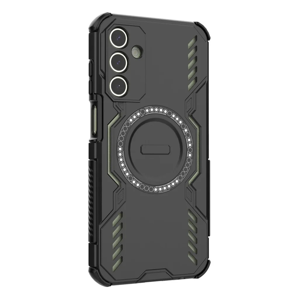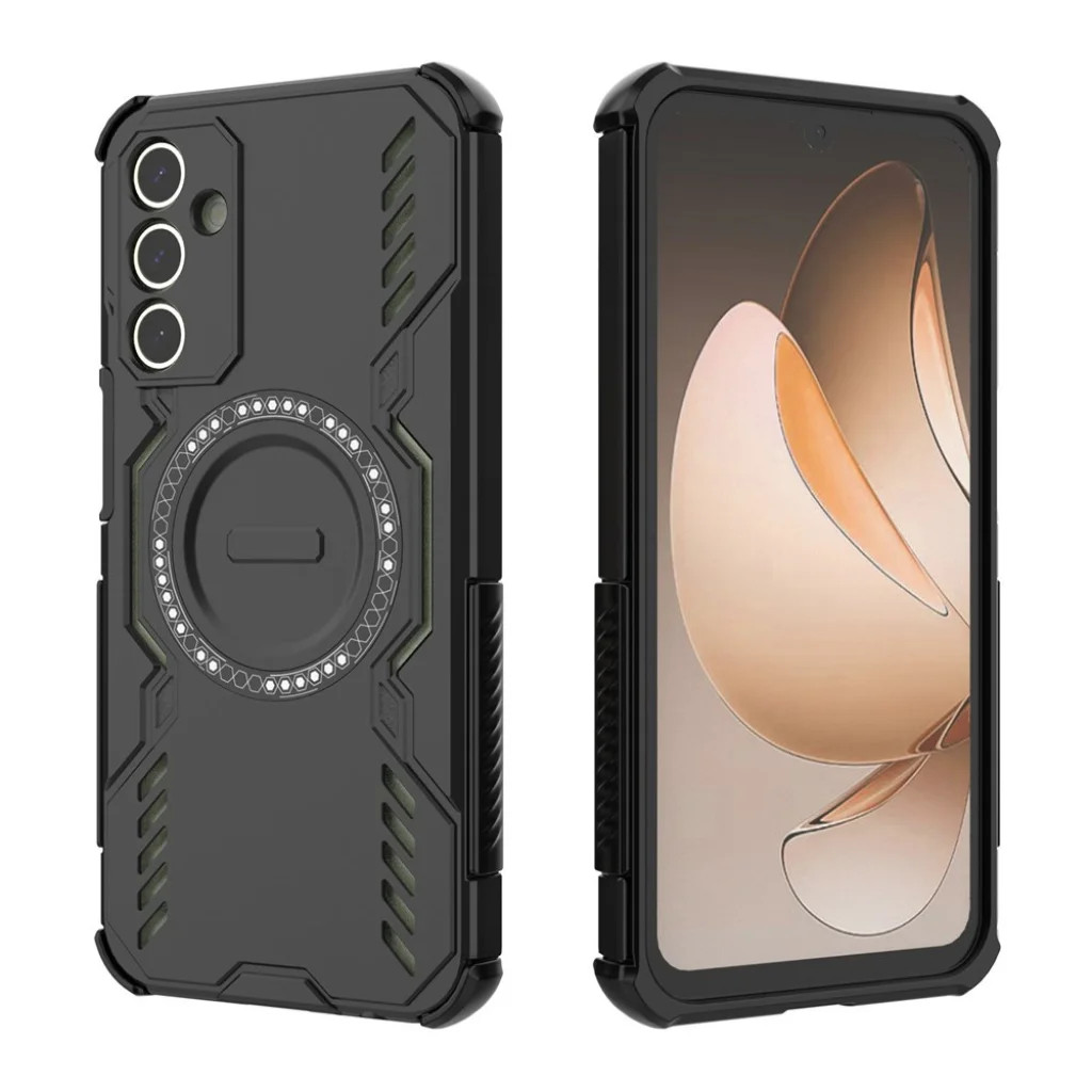 Kiemelkedő védelem a samsung galaxy a15 4g / a15 5g-hez Add meg Samsung Galaxy A15 4G vagy Galaxy A15 5G telefonodnak a megérdemelt védelmet a Techsuit ArmorMag tokkal! Ez a fekete, masszív tok úgy lett megtervezve, hogy megvédje készülékedet a mindennapi ütődésektől, karcolásoktól és leejtésektől, miközben modern és funkcionális kialakítással bír. Főbb jellemzők: Robusztus dupla rétegű védelem: A tok ütéselnyelő, rugalmas TPU keretből és erős, merev polikarbonát (PC) hátlapból áll, amelyek együttesen biztosítanak maximális védelmet az ütések és sérülések ellen. Ez a hibrid kialakítás garantálja a telefon teljes körű biztonságát. Beépített mágneses gyűrű: A hátoldalon található elegáns mágneses kör nemcsak esztétikus, hanem rendkívül praktikus is. Kompatibilis a MagSafe-típusú kiegészítőkkel, így könnyedén rögzítheted telefonodat mágneses autós tartókra, vagy használhatsz egyéb MagSafe kompatibilis tartozékokat. Fokozott fogás és csúszásgátló felület: Az ergonomikus kialakítás és az oldalsó textúrázott felületek kiváló, stabil fogást biztosítanak, minimalizálva a véletlen kicsúszás és leejtés esélyét. Kiemelt kamera- és képernyővédelem: A tok gondosan megemelt élekkel rendelkezik a képernyő és a kamera körül, megakadályozva, hogy ezek a kritikus felületek közvetlenül érintkezzenek sík felületekkel, így óvva őket a karcolásoktól és törésektől. Precíz illeszkedés: Kifejezetten a Samsung Galaxy A15 4G és A15 5G modellekhez tervezve. Pontos kivágásokat biztosít a portokhoz, hangszórókhoz és a kamerához, miközben a gombok is könnyedén hozzáférhetők és reszponzívan működnek. Stílusos „Armor” design: A fekete szín és a futurisztikus, páncélszerű mintázat nemcsak a védelmet hangsúlyozza, hanem egyedi és modern megjelenést is kölcsönöz telefonodnak. Kényelmes használat: Annak ellenére, hogy rendkívül strapabíró, a tok kényelmesen illeszkedik a kézbe, és nem teszi túlzottan naggyá vagy nehézzé a telefont. Válaszd a Techsuit ArmorMag tokot, ha megbízható, funkcionális és stílusos védelmet keresel Samsung Galaxy A15 4G / A15 5G telefonodhoz!