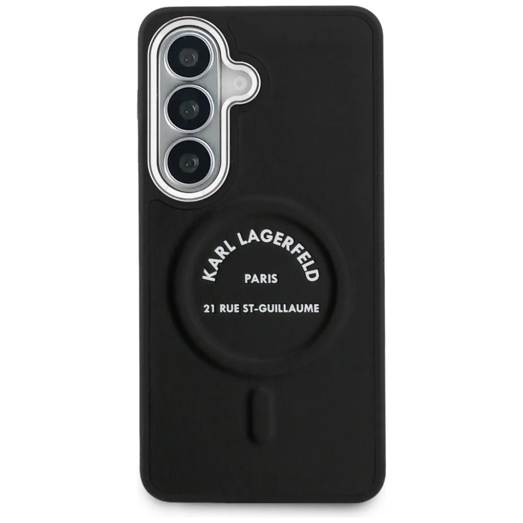 Karl Lagerfeld Karl Dombornyomtású RSG Logó Tok A Karl Dombornyomtású RSG Logó sorozat ideális megoldás azok számára, akik okostelefonjukhoz funkció és megkülönböztető stílus közötti harmóniát keresnek. Ez az egyedi kollekció nemcsak a készülék biztonságát garantálja, hanem egyedi karaktert is kölcsönöz neki, amely felhívja a figyelmet különleges dizájnjával. Különleges dizájn és kivételes minőség A neves Karl Lagerfeld márka exkluzív védőtoka eleganciát ötvöz egyedi stílussal. A tok magas minőségű öko-bőrből készült, érdekes textúrával, amely megkülönböztető megjelenést és hosszan tartó tartósságot biztosít. A felületet a KARL LAGERFELD felirat és a 21 Rue Saint-Guillaume cím díszíti, a Karl Lagerfeld divatház történelmi székhelye. A gombfedők és a kamerakeret alumíniumból készültek, elegáns megjelenést biztosítva az egész toknak. Ez a funkcionalitás és a divatos dizájn ideális kombinációja, biztosítva, hogy telefonod ne csak védett legyen, hanem megkülönböztető kiegészítővé is váljon. Szilárd szerkezet és tökéletes illeszkedés A gondosan szabott méreteknek köszönhetően a tok hatékonyan nyeli el az ütéseket, miközben teljes hozzáférést biztosít a portokhoz és a gombokhoz. A tok oldalai eléggé rugalmasak a könnyű fel- és levételhez, miközben tökéletesen védik a készülék keretét az ütésektől és sérülésektől. A kissé megemelt élek hatékonyan védik a telefon kijelzőjét, míg az emelt kamera körüli rész megóvja a lencséket a repedésektől és karcolásoktól. Töltsd a telefonod vezeték nélkül! A tok mágneses gyűrűvel van ellátva, amely kompatibilis a MagSafe vezeték nélküli töltővel, biztosítva a gyors és kényelmes töltést. A beépített mágnesek tökéletesen igazodnak a felhasználó telefonjához, erős és biztonságos kapcsolatot biztosítva a MagSafe töltővel. A tok hivatalosan licencelt a Karl Lagerfeld márkától. Műszaki specifikációk Kollekció: Karl Dombornyomtású RSG Logó Terméktípus: Védőtok Anyag: Öko-bőr / TPU / PC Szín: Fekete Kompatibilitás: Samsung Galaxy S26