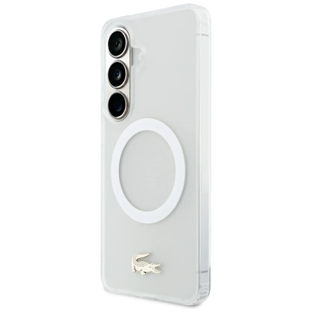 Samsung galaxy S26 shockproof frosted gold logo magsafe tok – fehér Emeld ki Samsung Galaxy S26 telefonod eleganciáját, és biztosítsd prémium védelmét a Lacoste legújabb MagSafe kompatibilis tokjával! Ez a különleges, fehér színű, áttetsző, matt felületű (frosted) tok nem csupán stílusos kiegészítő, hanem a mindennapok során is megóvja készülékedet a sérülésektől. Főbb jellemzők Exkluzív Lacoste design: A tok hátoldalát a híres, arany színű Lacoste krokodil logó díszíti, amely azonnal felismerhetővé teszi a prémium minőséget és az elegáns stílust. A matt, áttetsző felület modern és kifinomult megjelenést kölcsönöz a telefonnak, miközben engedi áttűnni az eredeti design egy részét. MagSafe kompatibilitás: A beépített erős mágneses gyűrűnek köszönhetően a tok tökéletesen illeszkedik a MagSafe töltőkhöz és egyéb MagSafe kiegészítőkhöz, biztosítva a gyors és kényelmes vezeték nélküli töltést és a stabil rögzítést. Kiemelkedő ütésállóság és ejtésvédelem: A masszív anyaghasználat és a gondosan megtervezett kialakítás, beleértve a megemelt éleket a képernyő és a kamerák körül, kiváló ütésállóságot és hatékony ejtésvédelmet biztosít, így megóvja Samsung Galaxy S26-odat a karcolásoktól és ütésekből eredő sérülésektől. Slim profil és pontos illeszkedés: Annak ellenére, hogy kiváló védelmet nyújt, a tok megőrzi a telefon vékony vonalait, nem teszi azt ormótlanná. Az "Easy Snap-On" kialakításnak köszönhetően felhelyezése és levétele rendkívül egyszerű. Minden gombhoz, porthoz és a kamerákhoz precíz kivágások biztosítják a zökkenőmentes használatot. Környezettudatos csomagolás: A Lacoste odafigyel a fenntarthatóságra, ezért a tok környezetbarát csomagolásban érkezik. Lacoste – az elegancia garanciája René Lacoste nemzetközi teniszbajnok által 1933-ban alapított márka krokodil logója az egyik leghíresebb divatlogóvá vált, és a francia elegancia szimbólumává nőtte ki magát. Ezzel a tokkal nem csak a telefonod védelméről gondoskodsz, hanem egy darabka időtlen stílust és minőséget is magaddal viszel. Válaszd a Samsung Galaxy S26 Shockproof Frosted Gold Logo MagSafe tokot – fehér színben, és élvezd a tökéletes egyensúlyt a stílus, a funkcionalitás és a prémium védelem között!