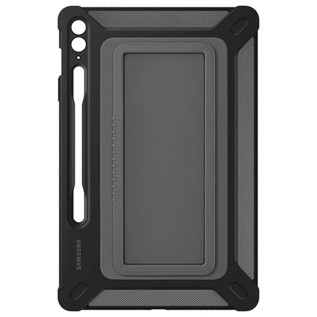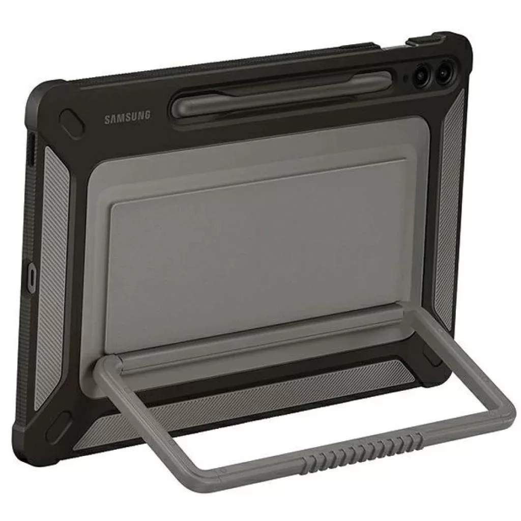 Tartsd a tabletet biztonságban a kültéri használat során. A strapabíró tok katonai szintű tartóssággal rendelkezik (MIL-STD 810G-516.7), hogy megvédje a tabletet kisebb esésektől és ütésektől utazás közben. Stabil állvány, kényelmes fogás A tok hátulján található beépített állványnak köszönhetően kényelmesen nézheted a készüléket fekvő módban. Az állvány fogóként is szolgál a hordozáshoz, biztosítva, hogy a tablet ne csússzon ki a kezedből még mozgás közben sem. Tartsd az S Pen-t biztonságban és könnyen elérhető helyen A beépített S Pen tartó praktikus megoldásként szolgál, amely biztosítja, hogy az S Pen mindig kéznél legyen és bármikor könnyen elérhető. Műszaki adatok Kategória: Kültéri tok Típus: Keménytok Anyag: TPU, PC Szín: Fekete Kompatibilitás: Samsung Galaxy Tab S9 FE+