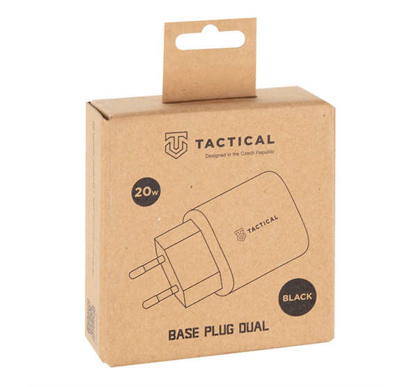 Tactical Base Plug Dual gyorstöltő adapter USB-A+ USB-C, 20W, fekete
