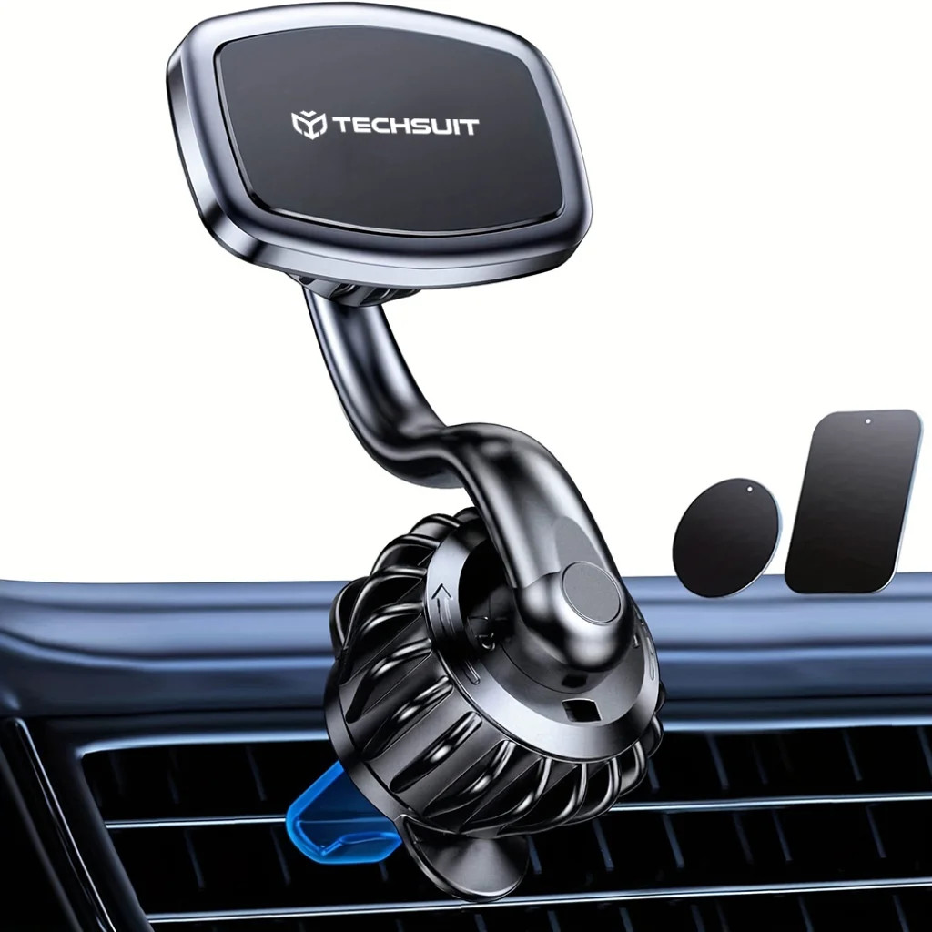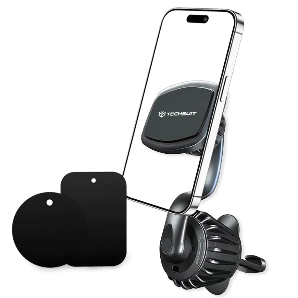 Techsuit - AirFix - Légbefúvóba rögzíthető autós tartó (S3) - fémlemezekkel, mágneses autós tartó N52, 360°-ban forgatható, univerzális - fekete