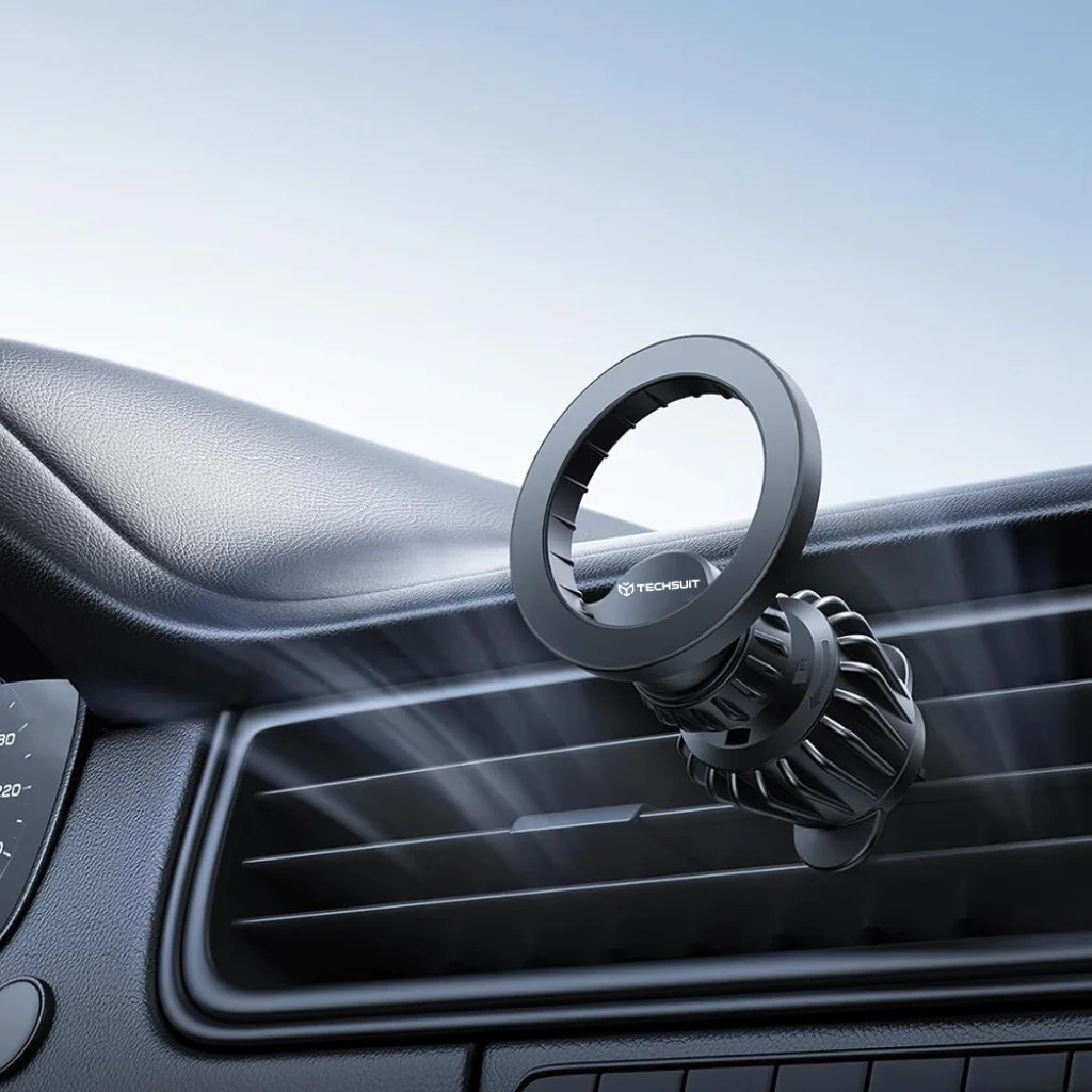 Techsuit - Autós tartó AirFix (S1) - fémgyűrűvel, szellőzőnyílásba szerelhető, MagSafe kompatibilis, N52, 360°-os forgatás - Fekete