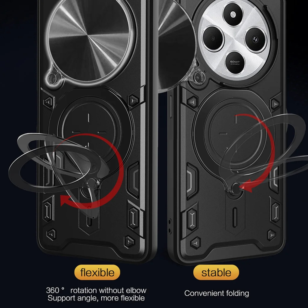 Techsuit - CamGuard Pro - Xiaomi Redmi 14C / Poco C75 - Kék tok Emeld új szintre a telefonod védelmét és funkcionalitását a Techsuit CamGuard Pro tokkal, amelyet kifejezetten a Xiaomi Redmi 14C és Poco C75 modellekhez terveztek! Ez a kék színű tok nem csupán stílusos megjelenést biztosít, hanem komplex, többrétegű védelmet és innovatív funkciókat is kínál a mindennapi használathoz. Főbb jellemzők: Robusztus, Többrétegű Védelem: Ne aggódj többé az ütések és koppanások miatt! A Techsuit CamGuard Pro tok TPU puha alsó réteggel és erős PC hátlappal készült, melyeket egy strapabíró ötvözet támasztékkal egészítettek ki. Ez a kombináció kiváló ütéscsillapítást és megbízható védelmet nyújt a készüléknek a karcolások, ejtések és mindennapi kopás ellen. Innovatív Csúszka Kameravédelem: A beépített CD-mintázatú csúszó ablak gondoskodik a telefon kameráinak maximális védelméről. Egyszerűen eltolható, így megóvja a lencséket a karcolásoktól és a szennyeződésektől, amikor épp nem használod, miközben gyors hozzáférést biztosít a fotózáshoz, amikor szükséged van rá. Beépített Forgatható Gyűrűtartó és Kitámasztó: A hátlapon található, fémből készült gyűrűtartó 360 fokban elforgatható, így rendkívül rugalmasan alkalmazkodik az igényeidhez. Használhatod biztonságos fogást biztosító ujjgyűrűként, megelőzve a véletlen leejtéseket, vagy praktikus kitámasztóként videónézéshez, videóhívásokhoz, kényelmes, kéz nélküli élményt nyújtva fekvő és álló pozícióban is. Mágneses Autós Tartó Kompatibilitás: A tokba integrált vékony vaslemeznek köszönhetően a CamGuard Pro tok problémamentesen használható mágneses autós tartókkal (nem tartozék). A stabil és erős mágneses rögzítés biztonságosan tartja telefonodat az utazás során. Egyedi Bejövő Hívás Jelző Funkció: Egy igazán innovatív funkció! A CD-mintázatú csúszka rejtett LED-világítással vagy a telefon vakujának fényét felhasználva villoghat bejövő hívások esetén, amikor a kamera védőcsúszka a helyén van. Ez a különleges vizuális jelzés biztosítja, hogy sose maradj le egy fontos hívásról sem, még zajos környezetben vagy néma üzemmódban sem. Precíz Illeszkedés: A tok precízen illeszkedik a Xiaomi Redmi 14C / Poco C75 telefonhoz, biztosítva a gombokhoz, portokhoz és a kamerához való akadálytalan hozzáférést. A Techsuit CamGuard Pro tokkal telefonod nem csupán védett lesz, hanem intelligens kiegészítővé válik, amely növeli a felhasználói élményt a mindennapokban. Válaszd a funkcionalitást, a védelmet és a stílust kék színben!