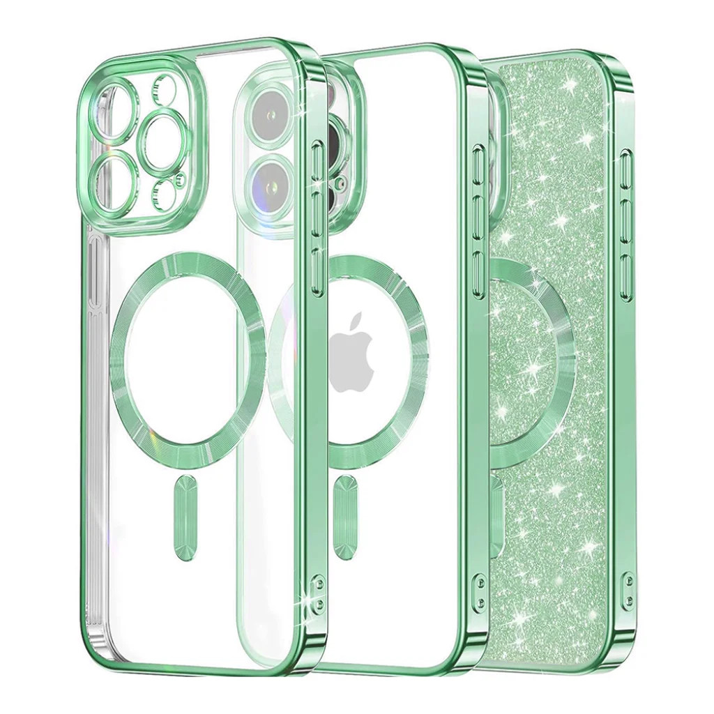 Techsuit - Luxus Csillámos MagSafe - iPhone 15 Pro Max - Világoszöld tok