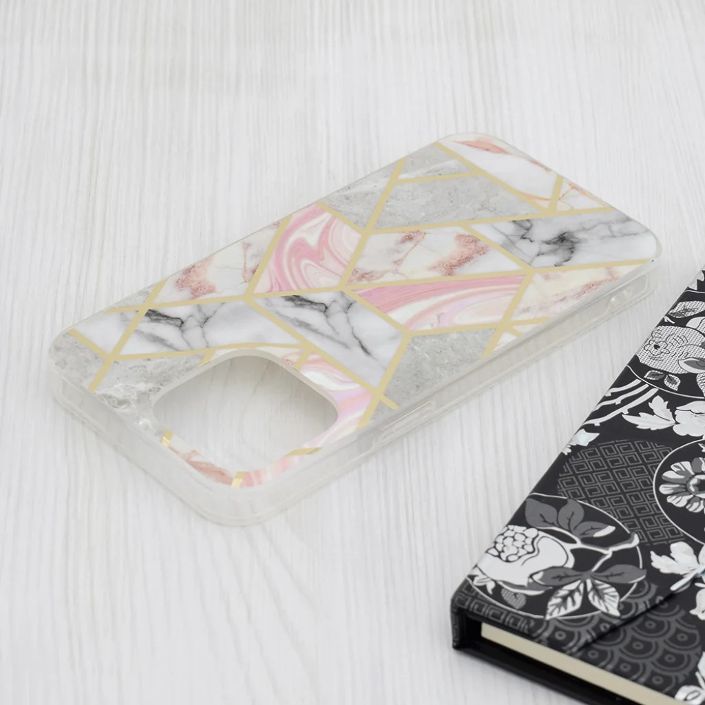 Techsuit - Márvány Széria - iPhone 15 Pro Max - Rózsaszín Hex tok