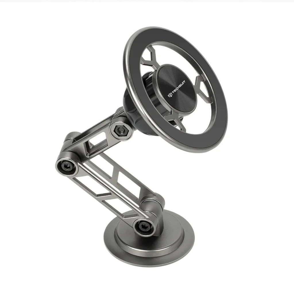 Techsuit - Prémium Autós Tartó TitanMagX (S14) - Műszerfalra/Asztalra, MagSafe Kompatibilis, 360°-os Forgatás, 3M Ragasztó - Szürke