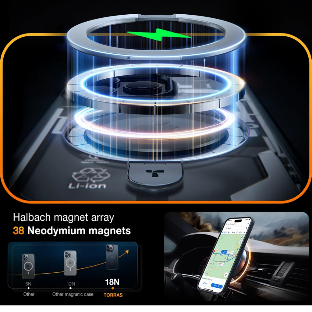 Torras Ostand tok iPhone 15 Pro Max készülékhez, fekete Bemutatjuk a Torras Ostand sorozatú tokját, amelyet kifejezetten az iPhone 15 Pro Max készülékhez terveztek. Ez a prémium minőségű, matt fekete tok nem csupán stílusos védelmet nyújt, hanem egyedülálló funkcionalitásával is kiemelkedik, hála az innovatív MagSafe kompatibilis, beépített állványgyűrűnek, amely maximális kényelmet és sokoldalúságot biztosít mindennapi használat során. Díjnyertes design és innováció A Torras Ostand tok az iF Design Award 2023 díjazottja a "Mag-Stand Magnetic Case with Kickstand" kategóriában, elismerve ezzel a termék kivételes formatervezését és funkcionalitását. Ez a nemzetközi elismerés garantálja, hogy egy innovatív és gondosan megtervezett, kategóriájában kiemelkedő terméket tart a kezében. Verhetetlen mágneses erő MagSafe-fel Tapasztalja meg a páratlan mágneses rögzítést a Torras által szabadalmaztatott Halbach mágneses tömbnek köszönhetően, amely 38 darab nagy teljesítményű neodímium mágnest tartalmaz. Ez az optimalizált elrendezés 18N vonóerőt biztosít, ami jelentősen erősebb (akár 3x erősebb), mint más MagSafe tokok. Ez garantálja a tökéletes és stabil illeszkedést minden MagSafe kiegészítővel, legyen szó vezeték nélküli töltőről, autós tartóról, pénztárcáról vagy Power Bankról. Felejtse el a véletlen leeséseket és a gyenge rögzítést! Extrém védelem katonai szinten Ne aggódjon többé telefonja épségéért! Az SGS tanúsítvánnyal rendelkező Torras Ostand tok 3X katonai szintű védelmet nyújt, és igazoltan képes ellenállni a 12 láb (kb. 3,6 méter) magasságból történő eséseknek. Több mint 3800 szigorú teszten esett át, hogy Önnek ne kelljen javítási költségekkel számolnia egy esetleges leejtés után. A megerősített sarkok és a robusztus kialakítás, a telefon kamerái körüli megemelt perem maximális biztonságot nyújtanak iPhone 15 Pro Max készülékének. Sokoldalú állvány és kényelmes fogás A tokba elegánsan integrált, 360°-ban forgatható állványgyűrű rendkívül sokoldalú felhasználási lehetőségeket kínál: Portré állvány: Ideális videóhívásokhoz, online tartalmak böngészéséhez, vagy receptek olvasásához anélkül, hogy a telefont tartanunk kellene. Fekvő állvány: Tökéletes filmnézéshez, játékhoz, videók streameléséhez vagy prezentációk megtekintéséhez. Rugalmas gyűrűs fogás: Biztonságos és kényelmes tartást biztosít egy kézzel is, megakadályozva a véletlen leejtéseket, és kényelmesen hordozható a laptophoz rögzítve is. Prémium érzet és kompatibilitás A Torras Ostand tok anyaga selymesen sima tapintású ("Sleek & Silky"), ami kivételesen kellemes érzetet nyújt a kézben. A vékony profil és a precíz kivágások biztosítják a gombok könnyű hozzáférését és a MagSafe kiegészítők (mint például a MagSafe akkumulátor, pénztárca vagy autós tartó) zavartalan használatát. A matt fekete felület elegáns megjelenést kölcsönöz iPhone 15 Pro Max készülékének, miközben ellenáll az ujjlenyomatoknak és a karcolásoknak, megőrizve a tok újszerű állapotát hosszú távon.