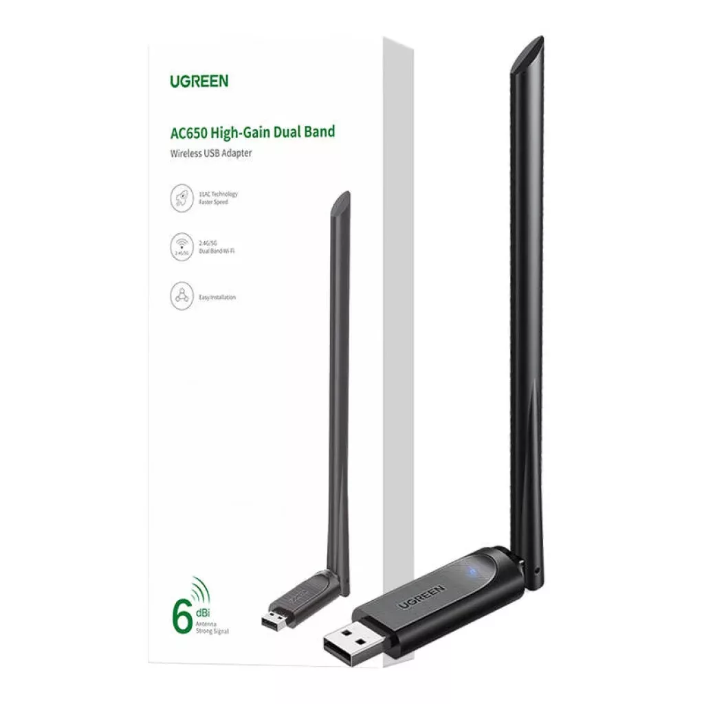 UGREEN 90339 USB adapter / Külső hálózati adapter (fekete) A UGREEN USB adapter lehetővé teszi, hogy számítógépét WiFi hálózathoz csatlakoztassa, vagy otthonában hotspotot hozzon létre. Támogatja a 2,4 GHz-es és 5 GHz-es kapcsolatokat. Könnyű, kompakt kialakítással rendelkezik, és ideális jeladónak és vevőnek egyaránt. Gyors és megbízható kapcsolat A UGREEN egy hálózati adapter, amely azonnali kapcsolatot biztosít az internethez. Mind a 2,4 GHz-es, mind az 5 GHz-es sávot támogatja, így akár 433 MB/s átviteli sebességet is biztosít. Felejtse el a lassan betöltődő oldalakkal vagy a jelekkel kapcsolatos problémákat - a termék lehetővé teszi, hogy zavartalanul böngésszen az interneten vagy videókat nézzen. Többfunkciós A UGREEN egy univerzális eszköz, amely lehetővé teszi a WiFi jelek vételét és továbbítását egyaránt. Használhatja számítógépének a hálózathoz való csatlakoztatására egy további routerrel, vagy otthoni hotspotként, nagy sebességű internet-hozzáférést biztosítva családja vagy vendégei számára. Tartalma: - Dokkoló állomás - USB-C-ről USB-C-re csatlakozó kábel - CD illesztőprogramokkal - Felhasználói kézikönyv Gyártó: UGREEN Modell: 90339 Szín: Fekete Chip: RTL8811CU Port: USB2.0 WiFi antenna: 6 dBi Működési frekvencia: 5 GHz, 2.4 GHz Vezeték nélküli kapcsolat: IEEE 802.11 b/g/n/a, IEEE 802.11 ac Átviteli sebesség: 5 GHz: 433 Mbps, 2,4 GHz: 200 Mbps Átviteli teljesítmény: 20 dBm Titkosítás: WPA-PSK, WPA2-PSK, 64/128 WEP Kompatibilitás: Windows (7/8/8/8/1/10/11), Linux (2.6.18 - 5.3)