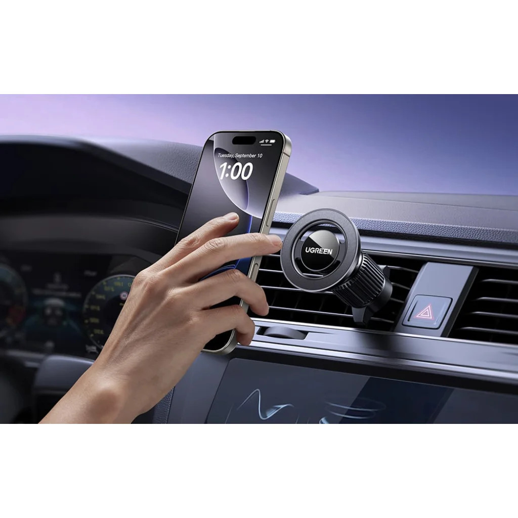 Az UGREEN LP986 egy masszív autós tartó, amely kényelmet és biztonságot nyújt vezetés közben - akár a szellőzőnyílásra, akár a műszerfalra szerelhető. Erős mágnesének és állítható fejének köszönhetően a tartó lehetővé teszi, hogy gyorsan rögzítse telefonját, és a képernyőt a tökéletes szögben pozícionálja. Ez a MagSafe rendszerrel rendelkező iPhone-felhasználók számára praktikus megoldás, de Androiddal is sikeresen működik - csak használd a mellékelt mágneses gyűrűt. A biztonságos rögzítés érdekében a tartó kétféle szerelési lehetőséget kínál - a szellőzőnyílásokra akasztható, vagy a műszerfalra ragasztható. A tartó mindkét esetben szilárdan tart, még egyenetlen felületen való vezetéskor is. A megerősített fémkapocs kialakítása növeli a tartósságot, és minimálisra csökkenti a vezetés közbeni kilazulás kockázatát. Az alkalmazott N52 mágnes, amely akár 2500 g húzóerővel rendelkezik, biztosítja, hogy a telefon stabilan üljön a tartóban. Ez különösen fontos dinamikus vezetés vagy hirtelen manőverek során. A tartó támogatja az összes 12-es sorozatú vagy annál nagyobb, MagSafe-jel ellátott iPhone-t, a mellékelt fémgyűrűkkel pedig bármilyen MagSafe nélküli okostelefonnal vagy tokkal is használható. A 360°-ban forgatható fej lehetővé teszi, hogy telefonodat függőlegesen vagy vízszintesen helyezd el - például navigációhoz, kihangosított telefonáláshoz vagy zenehallgatáshoz. A pozícióváltás zökkenőmentesen, egy kézzel történik, anélkül, hogy levenné a szemét az útról. Gyártó: Ugreen Modell: LP986 Kompatibilitás: iPhone 12 (vagy újabb) vagy más okostelefonok MagSafe tokkal vagy mágneses gyűrűvel.