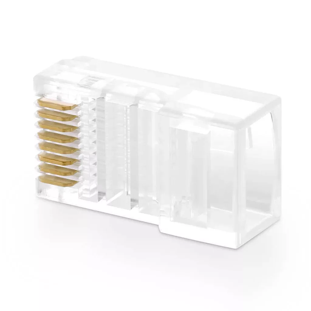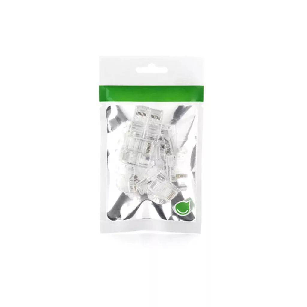 RJ45 csatlakozó UGREEN NW110 Ethernet, 8P / 8C, Cat.5 / 5e, UTP (100db)Az RJ45 NW110 csatlakozó egy szabványos csatlakozó, amelyet leggyakrabban csavart érpárú kábelek lezárására használnak. Ez a legnépszerűbb és univerzális megoldás a vezetékes hálózati infrastruktúra kiépítésére. A termék gyártásához kiváló minőségű műanyagot használtak, ami biztosítja a tartósságát.KompatibilitásA termék kompatibilis olyan eszközökkel, mint a laptopok, TV-k, modemek, útválasztók, HUB-ok, kapcsolók, ADSL, TV-dobozok és sok más eszköz. Segítségével probléma nélkül csatlakoztathatja készülékét a hálózathoz. Leírás MárkaUgreenModellNW110AnyagPCAlapértelmezett8P/8CKategória5/5eKompatibilitásKábelek 23-28 AWG