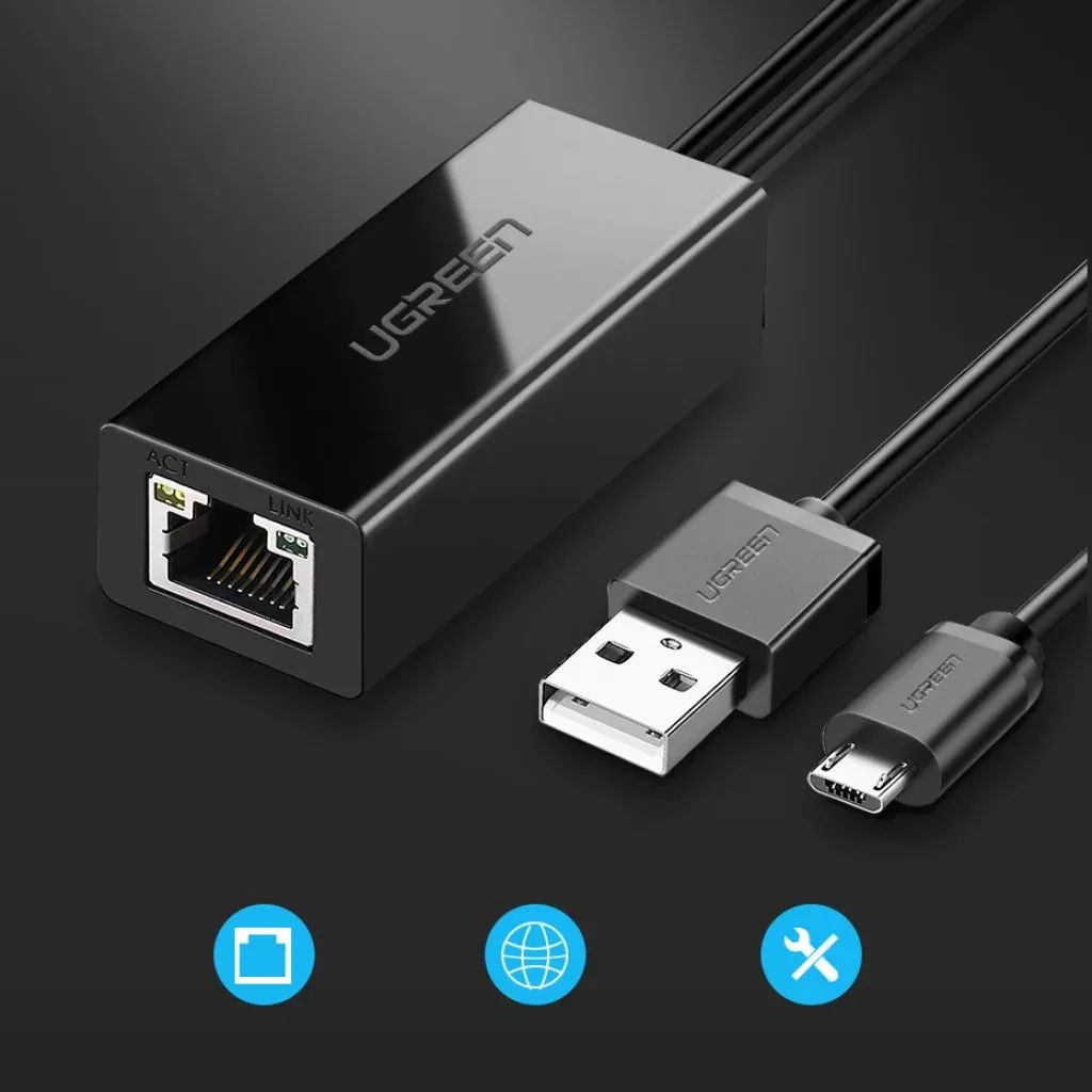 Lehetővé teszi a Micro USB aljzatú TV stick, Chromecast Ultra / 3 / 2 / 1 / Audio, Google Home Mini, Raspberry Pi Zero, stb. vezetékes internet csatlakozását 10/100 Mbps sebesség biztosítása USB 2.0 480Mbps sebességgel Plug & Play kialakítás, egyszerű használat Hálózati töltőről biztosítható USB áramellátás