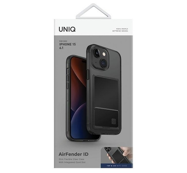 Uniq Air Fender Apple iPhone 15 kártyatartós tok, füstszürke