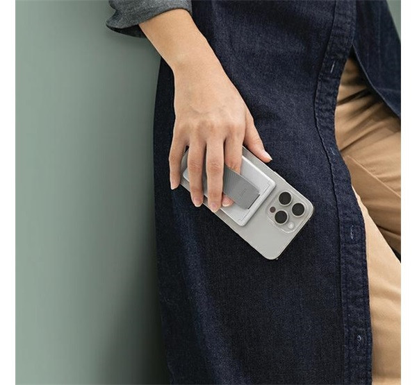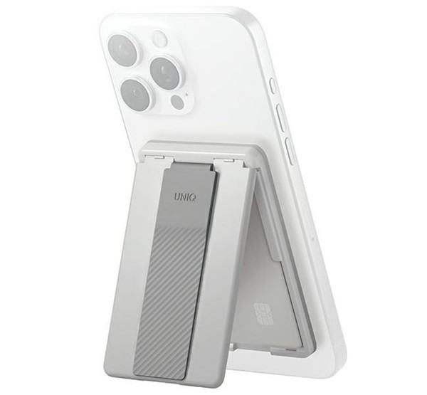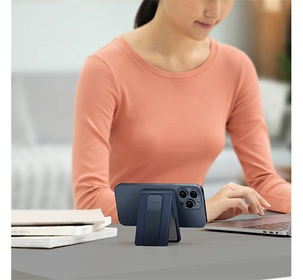 A Uniq Heldro ID egy sokoldalú, mágneses kártyatartó, amely egyben telefontartóként és kényelmes fogásként is funkcionál.