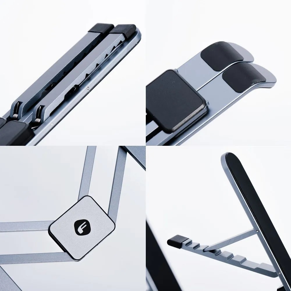 Az állvány kiváló minőségű anyagokból készült: alumíniumból, POM-ból és csúszásgátló szilikonból. Ez a kombináció biztosítja a merevséget, és megakadályozza az eszköz elcsúszását vagy karcolódását. Akár 1.2 kg-os teherbírásával biztonságosan megtartja a legtöbb népszerű laptopmodellt vagy nagyobb táblagépet.