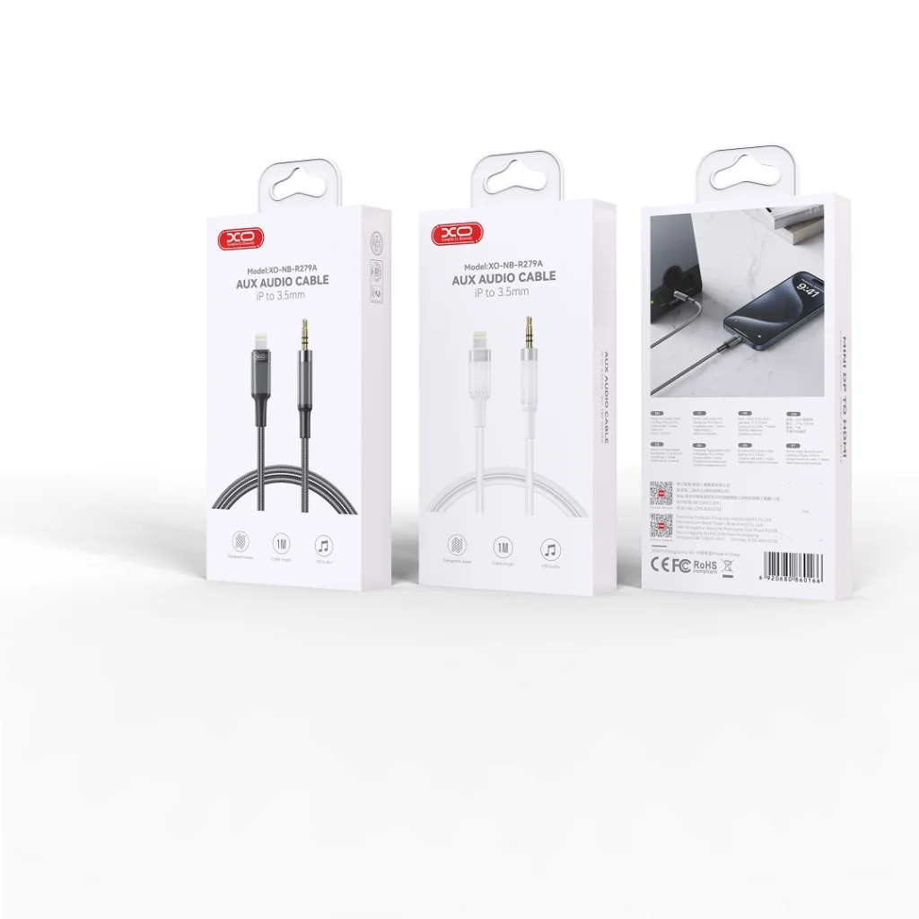 Specifikáció - A csomagolás típusa: doboz - Márka: XO - Szín: fehér - Kábel hossza: 1 m - Csatlakozó: 3,5 mm (mini-jack) (férfi) Lightning (férfi) - Szavatosság: 12 hónap Termékleírás: Az XO NB-R279A egy univerzális audió kábel 3,5 mm-es jack aljzattal rendelkező eszközökhöz. Lehetővé teszi például okostelefon csatlakoztatását Lightning csatlakozóval autórádióhoz vagy más, 3,5 mm-es jack aljzattal rendelkező eszközhöz.