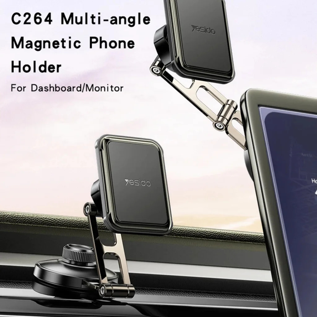 Yesido C264 autós tartó: Mágneses rögzítés, prémium anyagok, tökéletes kényelem Fedezze fel a Yesido C264 mágneses autós tartót, amely a stílust, a tartósságot és a funkcionalitást ötvözi, hogy a telefonja mindig biztonságosan és optimális látószögben legyen elérhető utazás közben. Ez a cink ötvözetből készült, elegáns fekete tartó a műszerfalhoz vagy a szélvédőhöz rögzíthető, és innovatív, összecsukható karjaival maximális rugalmasságot biztosít. Kiváló design és anyaghasználat Cink ötvözetből készült karok: A Yesido C264 tartó karjai strapabíró cink ötvözetből készültek, amely nemcsak hosszú élettartamot garantál, hanem prémium, luxus érzetet is kölcsönöz a terméknek. Ez az anyag fokozott ellenállást biztosít a mindennapi használat során. Elegáns fekete kivitel: Az időtlen fekete szín modern és letisztult megjelenést kölcsönöz, harmonikusan illeszkedve bármilyen autó belső teréhez. Sokoldalú elhelyezés és látószög Többféle rögzítési opció: Az erős tapadókorongos alapnak köszönhetően stabilan rögzíthető a műszerfalra, a szélvédőre vagy akár az autó monitorjának szélére is, biztosítva a maximális rugalmasságot. 360°-os forgatás és többállású kar: A tartófej 360°-ban szabadon elforgatható, így könnyedén beállíthatja a telefonját vízszintes vagy függőleges állásba. Az összecsukható, többállású karok segítségével precízen megtalálhatja a tökéletes látószöget, és stabilan rögzítheti azt. Helytakarékos kialakítás: Az innovatív összecsukható karoknak köszönhetően a tartó minimális helyet foglal, amikor nincs használatban, így segít rendezetten és tágasan tartani az autó belső terét. Ultra erős mágneses rögzítés 6 db szupererős mágnes: A Yesido C264 tartó hat darab ultra erős mágnessel van felszerelve, amelyek garantálják a mobiltelefon stabil és biztonságos tartását, még rázós úton is. Egyszerű használat: Az erős mágneses kialakításnak köszönhetően a telefon egy mozdulattal felhelyezhető és levehető a tartóról, rendkívül egyszerűvé és kényelmessé téve a használatát. A Yesido C264 autós tartó ideális választás azok számára, akik prémium minőséget, megbízható rögzítést és maximális kényelmet várnak el egy autós telefontartótól.