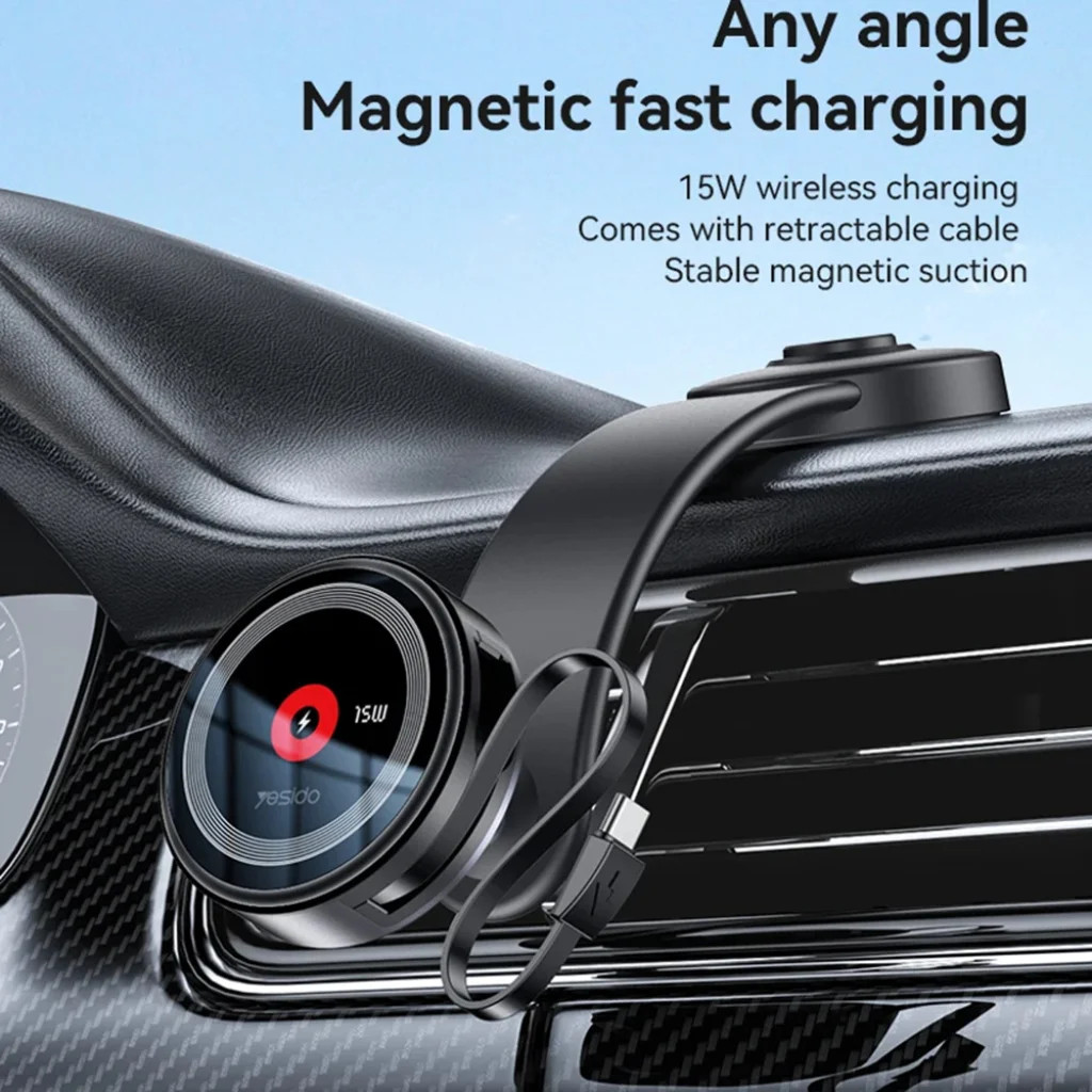 Yesido C314 autós tartó vezeték nélküli töltéssel – stílus és funkcionalitás útközben Tapasztald meg a modern autós kényelmet a Yesido C314 autós tartóval, amely nem csupán biztonságosan rögzíti telefonodat, de villámgyors, 15W-os vezeték nélküli töltéssel is gondoskodik készüléked energiájáról. Elegáns fekete kialakításával és praktikus, visszahúzható Type-C kábelével ez a műszerfalra rögzíthető tartó elengedhetetlen kiegészítő minden autós számára. Főbb jellemzők 15W maximális vezeték nélküli gyorstöltés: Gyorsan feltölti telefonodat még navigáció közben is, így sosem merül le. Erős N52 mágneses rögzítés: 10 db N52-es mágnes duplagyűrűs elrendezésben biztosítja a stabil és biztonságos tartást még rázós utakon is. Beépített, visszahúzható Type-C tápkábel: A 90 cm hosszú Type-C kábel automatikusan visszahúzódik, amikor nincs rá szükség, így rendben tartja az autó belsejét. Ez a kábel szolgál a tartó áramellátására. Rugalmas pozicionálás: Bármilyen szögben beállítható a tökéletes látószög elérése érdekében. Stabil műszerfali rögzítés: Erős 3M ragasztós szivacs alap biztosítja a rezgésmentes, szilárd tapadást a műszerfalon. Univerzális kompatibilitás: A legtöbb (99%-a) autótípushoz alkalmas, és bármilyen Qi-kompatibilis okostelefont támogat. Kettős funkció: Töltés nélkül is használható egyszerű mágneses tartóként. Részletes leírás Villámgyors 15W vezeték nélküli töltés A Yesido C314 tartó a legmodernebb 15W-os vezeték nélküli gyorstöltési technológiával van felszerelve. Ez azt jelenti, hogy telefonod gyorsan és hatékonyan töltődik, még akkor is, ha intenzíven használod, például GPS navigációra. Mondj búcsút a lemerült akkumulátoroknak, és élvezd a zavartalan utazást, tudva, hogy telefonod energiája pillanatok alatt helyreáll. Páratlan mágneses stabilitás N52 mágnesekkel A Yesido C314 a legmodernebb N52-es mágnesekkel büszkélkedhet, melyek 10 darabban, dupla gyűrűs elrendezésben biztosítják a páratlanul erős és stabil mágneses tapadást. Ez a kialakítás nagyobb érintkezési felületet és erősebb mágneses vonzást garantál, így telefonod szilárdan a helyén marad még a legrosszabb útviszonyok között is, anélkül, hogy aggódnod kellene a leesés miatt. Intelligens visszahúzható Type-C tápkábel Az autós tartó egy beépített, 90 cm hosszú, automatikusan visszahúzható Type-C kábellel rendelkezik. Ez a kábel a tartó áramellátásához szükséges, és egyszerűen csatlakoztatható az autó USB-C portjához, hogy elindítsa a mágneses vezeték nélküli töltést. Ha nincs szükség a kábelre, egyszerűen visszahúzódik a tartóba, megőrizve az autó rendezett belső terét. Széles körű kompatibilitás és egyszerű telepítés Az erős 3M alapú ragasztónak köszönhetően a Yesido C314 könnyedén rögzíthető a műszerfalra, szilárd tapadást és rezgésmentes használatot biztosítva. A tartó kialakítása a gépkocsimodellek 99%-ához illeszkedik, így szinte bármely autóban kényelmesen és biztonságosan használható. Optimális látószög, gondtalan utazás A tartó rugalmas kialakítása lehetővé teszi, hogy telefonodat bármilyen szögben beállítsd, így mindig a számodra legoptimálisabb látószögben lesz a kijelző. Ez növeli a biztonságot és a kényelmet vezetés közben, legyen szó navigálásról, hívások fogadásáról vagy zenehallgatásról. Specifikációk Modell: Yesido C314 Töltési teljesítmény: 15W (max) vezeték nélküli gyorstöltés Mágnesek: N52 (10 db, dupla gyűrűs elrendezés) Tápkábel: Visszahúzható Type-C (90 cm hosszúságú) Rögzítés: Műszerfalra, erős 3M ragasztós szivacs alappal Szín: Fekete