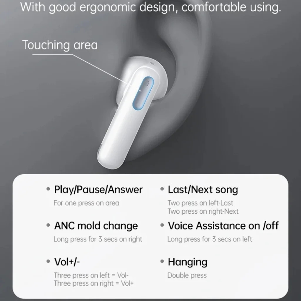 Merüljön el a zene világában, vagy élvezze a kristálytiszta hívásokat a Yesido TWS34 vezeték nélküli fülhallgatóval! Ez a modern, stílusos és ergonomikus kialakítású fülhallgató minden igényt kielégít, legyen szó munkáról, sportról vagy kikapcsolódásról. Kiemelkedő hangélmény és zajszűrés Aktív zajszűrés (ANC): Élvezze a zavartalan zenehallgatást vagy a fókuszált munkát az akár -28dB mély zajcsökkentést biztosító aktív zajszűrésnek köszönhetően. Szűrje ki a környezeti zajokat és merüljön el a hangok világában. Környezeti zajszűrés (ENC) kettős mikrofonnal: A beépített ENC mikrofonok gondoskodnak arról, hogy hívásai során a hangja kristálytiszta maradjon. Elnyomja a környezeti zajokat, így a beszélgetések minden körülmények között érthetőek lesznek. Kiváló hangminőség: A beépített Φ13mm-es dinamikus hangszórók gazdag és részletgazdag hangzást biztosítanak, mély basszusokkal és tiszta magas hangokkal. Bluetooth 5.3 és stabil kapcsolat A legújabb Bluetooth 5.3 technológia gyors, stabil és energiahatékony vezeték nélküli kapcsolatot biztosít eszközeivel. Élvezze a megszakításmentes zenehallgatást és a telefonhívásokat akár 10 méteres hatótávolságon belül. Kényelem és intuitív érintésvezérlés Ergonomikus, fülbe helyezhető kialakítás: A Yesido TWS34 fülhallgatót úgy tervezték, hogy hosszú távon is kényelmesen illeszkedjen a fülbe, anélkül, hogy kellemetlenséget okozna. Ideális választás mindennapi használatra. Érintésvezérlés: Irányítsa a zenét és a hívásokat egyszerű érintésekkel: Lejátszás/Szünet/Hívásfogadás: Egy érintés a vezérlőfelületen Előző dal: Két érintés a bal fülhallgatón Következő dal: Két érintés a jobb fülhallgatón ANC mód váltása: Hosszú érintés (3 másodperc) a jobb fülhallgatón Hangasszisztens be/ki: Hosszú érintés (3 másodperc) a bal fülhallgatón Hangerő csökkentése: Három érintés a bal fülhallgatón Hangerő növelése: Három érintés a jobb fülhallgatón Hívás befejezése: Két érintés Hosszú üzemidő és gyors töltés Akár 5 óra üzemidő: Egyetlen feltöltéssel akár 4-5 óra zenehallgatást vagy 5 óra beszélgetést biztosítanak a fülhallgatók. Töltőtok: A 320mAh kapacitású töltőtok több további feltöltést tesz lehetővé útközben, így a teljes üzemidő jelentősen megnő. A fülhallgatók akkumulátora egyenként 35mAh. Gyors töltés Type-C porton keresztül: Mindössze körülbelül 1 óra alatt teljesen feltölthető a töltőtok, a modern Type-C csatlakozónak köszönhetően. Extrém készenléti idő: A fülhallgatók és a tok együttesen akár 180 napos készenléti időt is képesek biztosítani, így mindig készen állnak a használatra. Technikai paraméterek Modell: Yesido TWS34 Szín: Fehér Bluetooth verzió: 5.3 Hatótávolság: ≤10 méter Akkumulátor (fülhallgató): 2x 35mAh (Li-polimer) Akkumulátor (töltőtok): 320mAh (Li-polimer) Zenehallgatási idő: Kb. 4-5 óra Beszélgetési idő: Kb. 5 óra Töltési idő (tok): Kb. 1 óra Készenléti idő: Akár 180 nap Töltési port: Type-C Hangszóró átmérője: Φ13mm Hangszóró teljesítménye: 3-5mW Bemeneti feszültség: DC5V/200mA Zajszűrés: Aktív zajszűrés (ANC, -28dB), Környezeti zajszűrés (ENC) Vezérlés: Érintésvezérlés