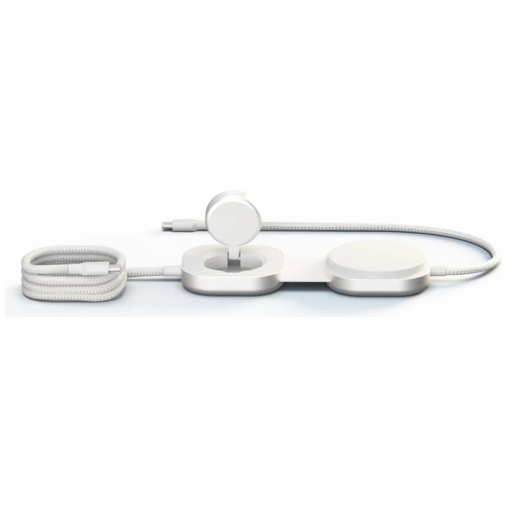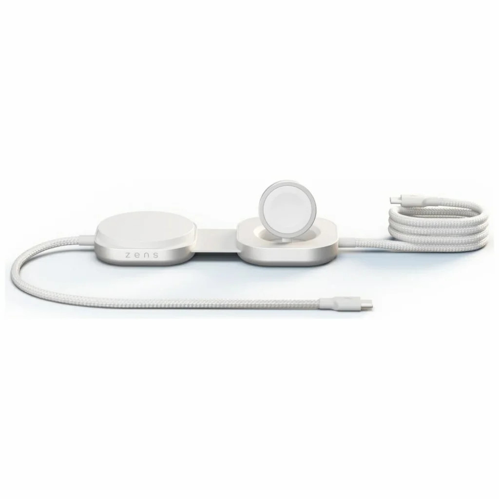 A Zens Pro 3 2 az 1-ben indukciós töltő modern és kompakt megoldás Apple készülékek felhasználói számára. Egyesíti a USB-C kábel és a vezeték nélküli töltő funkcióját, így egyszerre biztosít tápellátást laptop vagy tablet számára, valamint tölti az iPhone-t (12-es szériától felfelé) és az Apple Watchot. A Qi2 technológiának és a mágneses illesztésnek köszönhetően az eszközök automatikusan az optimális pozícióba kerülnek, így gyors és stabil töltést biztosít akár 15 W teljesítménnyel iPhone esetén és akár 5 W teljesítménnyel Apple Watch esetén. A Zens Pro 3 maximális kényelemre lett tervezve – az összecsukható kialakítás és az egyetlen kábel szükségtelenné teszi több töltő és kábel hordozását. A kiváló minőségű alumínium és a tartós, fonott kábel hosszú élettartamot és elegáns megjelenést biztosít. A kábel támogatja az USB-C eszközök, például MacBook vagy iPad töltését is, legfeljebb 140 W teljesítménnyel, ezért a teljes teljesítmény kihasználásához nagy teljesítményű USB-C adapter használata ajánlott (lehetőleg 140 W-os). Ideális megoldás munkához, utazáshoz és mindennapi használathoz – egy eszköz, számos lehetőség. Műszaki adatok: Típus: 2 az 1-ben indukciós töltő Zens Pro 3 + Apple Watch töltés Qi2 15W USB-C/USB-C Töltési teljesítmény: akár 15 W (okostelefon / fülhallgató), akár 5 W (Apple Watch), akár 140 W (USB-C) Csatlakozó: USB-C / USB-C Töltési szabvány: Qi2 (Qi-kompatibilis) Kompatibilitás: iPhone 12 és újabb modellek, AirPods, Apple Watch, USB-C eszközök Technológia: mágneses illesztés Tápellátás: USB-C hálózati adapter (ajánlott 140 W) Anyag: alumínium, fonott kábel Kialakítás: összecsukható, kompakt Szín: fehér A csomag tartalma: Zens Pro 3 USB-C/USB-C kábel, használati útmutató, garanciakártya
