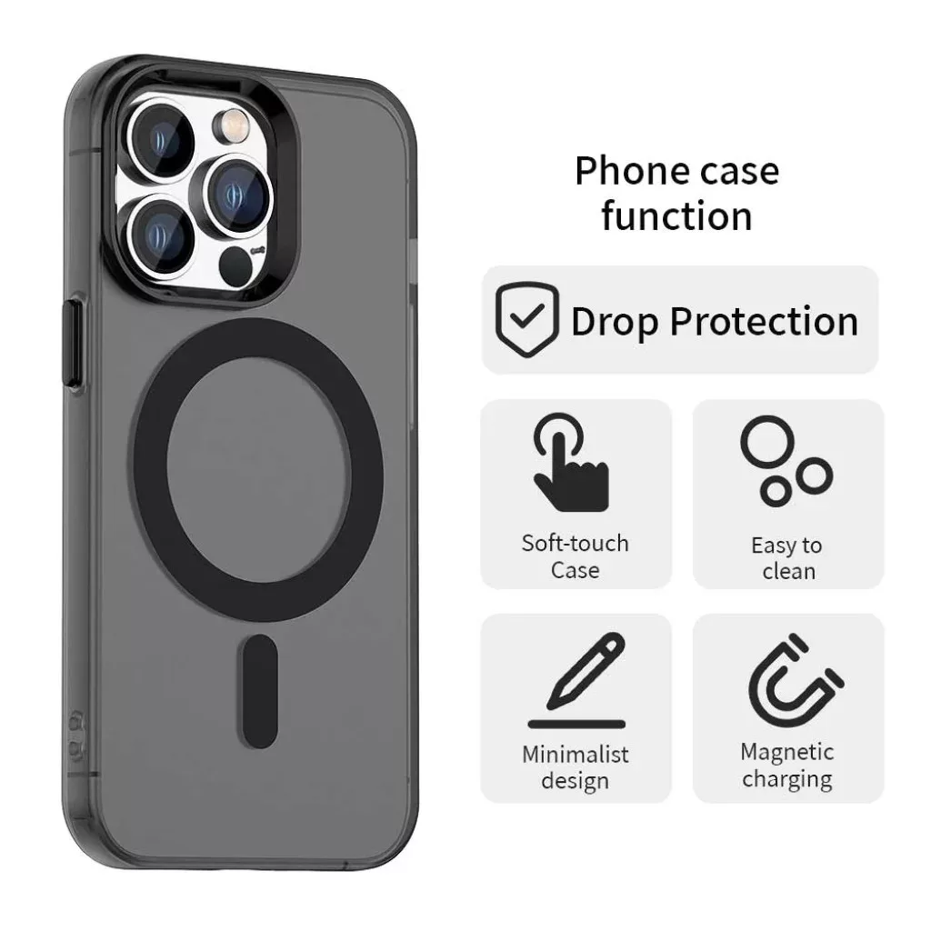 iPhone 13 Pro Max - candycase magsafe tok - fekete - techsuit Védje meg iPhone 13 Pro Max készülékét stílusosan és hatékonyan a Techsuit CandyCase MagSafe tokkal! Ez a prémium minőségű, áttetsző fekete tok nem csupán kiváló védelmet nyújt, hanem tökéletesen kihasználja a MagSafe technológia adta lehetőségeket is, mindezt egy elegáns, minimalista köntösben. Kiemelkedő védelem minden helyzetben Hadiipari minőségű ütésállóság: A tok fejlett, ütéselnyelő légpárnás technológiával és megerősített sarkokkal készült, amelyek hatékonyan elnyelik az esések és ütések energiáját, így maximális védelmet biztosítanak készülékének. Teljes körű védelem: A kijelző és a kamera körül megemelt élek gondoskodnak arról, hogy a lencsék és a kijelző ne érjenek közvetlenül felületekhez, így hatékonyan óvják azokat a karcolásoktól és sérülésektől. Tartós és megbízható: Az "all-around" védelemnek köszönhetően telefonja minden oldalról biztonságban van, a mindennapi használat során felmerülő kihívásokkal szemben is. Zökkenőmentes magsafe kompatibilitás Beépített mágnesgyűrű: A tokba integrált erős MagSafe mágnesgyűrű tökéletes és stabil illeszkedést biztosít minden MagSafe kiegészítőhöz. Legyen szó vezeték nélküli töltőről, autós tartóról vagy mágneses pénztárcáról, a rögzítés mindig pontos és megbízható. Egyszerű mágneses töltés: Élvezze a kényelmes és gyors mágneses töltést anélkül, hogy le kellene vennie a tokot. Prémium anyagok és kényelmes tapintás Finom és selymes tapintás: A tok felülete "delicate texture" és puha tapintású, ami rendkívül kellemes fogást biztosít, és hosszantartó használat során sem fárasztó. Ujjlenyomat-mentes bevonat: Speciális, importált anti-ujjlenyomat bevonatának köszönhetően a tok ellenáll az ujjlenyomatoknak és a szennyeződéseknek, így mindig tiszta és friss marad a megjelenése. Könnyen tisztítható: A szennyeződések egyszerűen letörölhetők a felületről, megőrizve a tok esztétikus állapotát. Elegáns és funkcionális design Minimalista és modern: Az áttetsző fekete design kiemeli az iPhone 13 Pro Max eredeti szépségét, miközben diszkrét, elegáns védelmet nyújt. A "high end quality and minimalist design" a Techsuit filozófiájának alapja. Precíz gombok: Az "independent key" kialakításnak köszönhetően a telefon gombjai tökéletesen hozzáférhetők és könnyen nyomhatók, biztosítva a zavartalan felhasználói élményt. Dedikált illeszkedés: A tok pontosan az iPhone 13 Pro Max méreteihez és formájához lett tervezve, garantálva a tökéletes illeszkedést és a hozzáférést minden porthoz és funkcióhoz. Velvet textúra, matt hátlap: A matt, bársonyos textúrájú hátlap nem csak jól néz ki, de a csúszásmentes fogást is elősegíti.