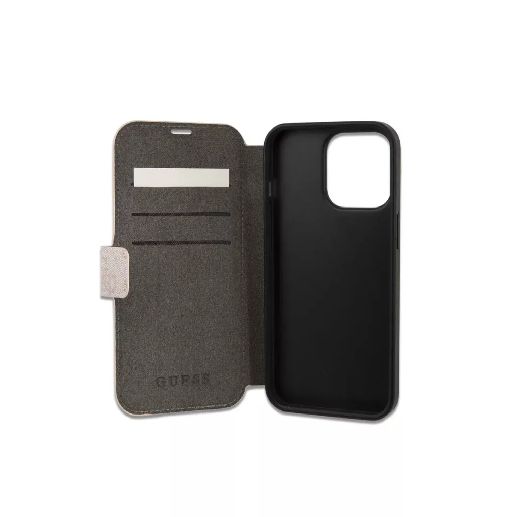Guess 4G Metal Logo fliptok iPhone 13 Pro Max-hoz, rózsaszín A Guess márka évtizedek óta a divat, az elegancia és a prémium minőség szinonímája. Ezzel a kivételes fliptokkal most te is részese lehetsz ennek a kifinomult világnak, miközben iPhone 13 Pro Max készüléked tökéletes védelemben részesül. Ez a stílusos tok nem csupán egy védőburkolat, hanem egy divatos kiegészítő is. A fényűző Saffiano textúrán elegánsan jelenik meg a klasszikus 4G logó, melyet egy diszkrét fém Guess logó egészít ki. A rózsaszín árnyalat nőies és modern megjelenést kölcsönöz készülékednek, azonnal felismerhetővé téve a márkát és kiemelve stílusodat. A tok precízen úgy lett megtervezve, hogy teljes körű védelmet nyújtson az iPhone 13 Pro Max készüléknek a mindennapi karcolások, ütődések és szennyeződések ellen. Emellett rendkívül funkcionális is: a belső oldalon két praktikus kártyatartó rekesz található, ahol biztonságosan tárolhatod hitelkártyáidat, személyi igazolványodat vagy bankjegyeidet. A pontos kivágásoknak köszönhetően minden porthoz és gombhoz könnyedén hozzáférhetsz, anélkül, hogy le kellene venned a tokot. Válaszd az iPhone 13 Pro Max Guess PU 4G Metal Logo fliptokot rózsaszín színben, ha egy olyan tokot keresel, amely ötvözi a luxus megjelenést, a megbízható védelmet és a praktikus funkciókat!